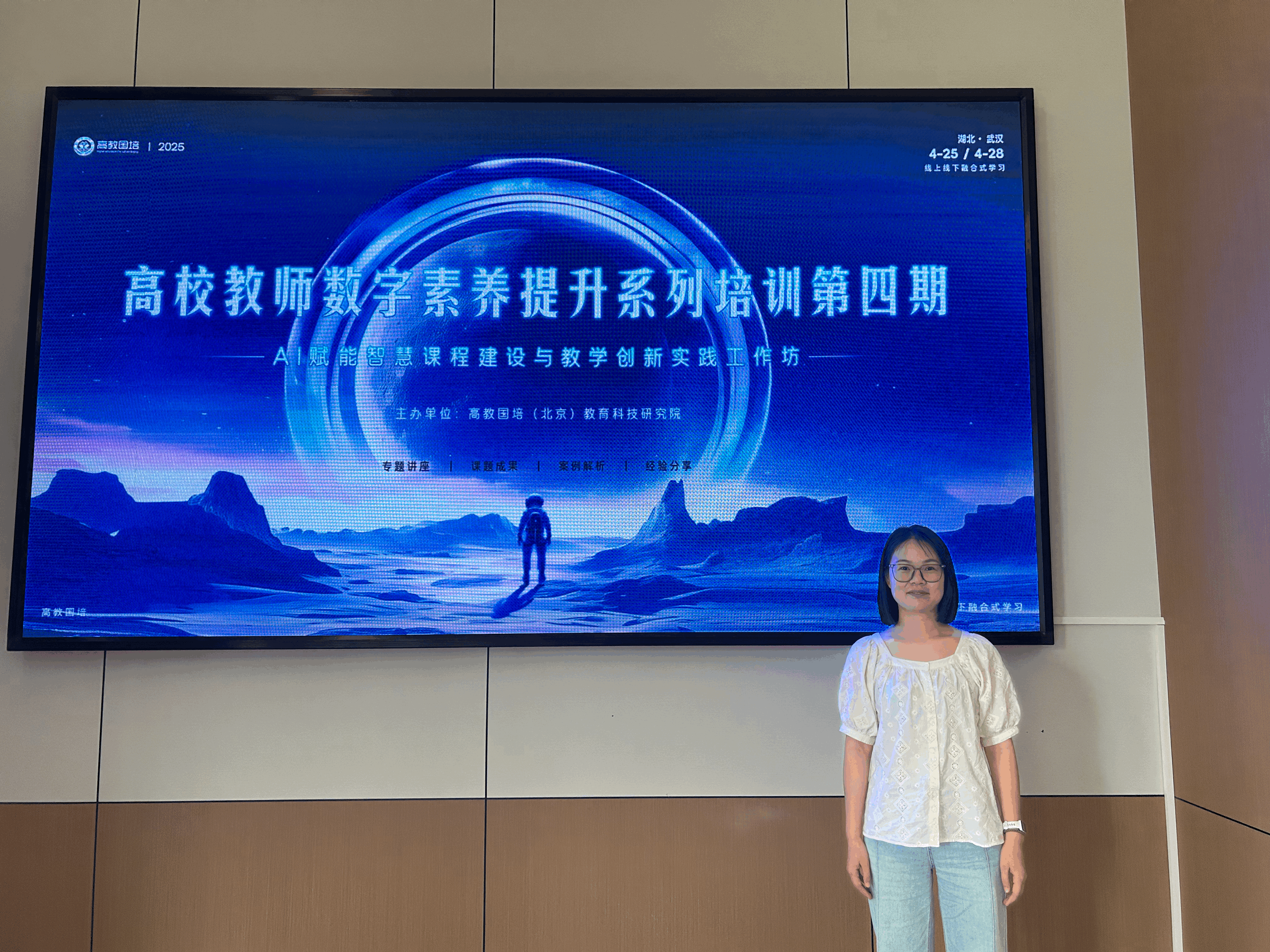 为提升教师数字素养,推进智慧课程建设与教学改革创新,4月26日至27日,智能制造学院机械基础课部教师代表熊映赴武汉参加了由高教国培主办的“高校教师数字素养提升系列培训——AI赋能智慧课程建设与教学创新实践工作坊”。本次活动通过专题讲座、案例分享、实操演练等形式,聚焦人工智能技术在教学中的应用,助力高校教师探索数字化教育新路径。