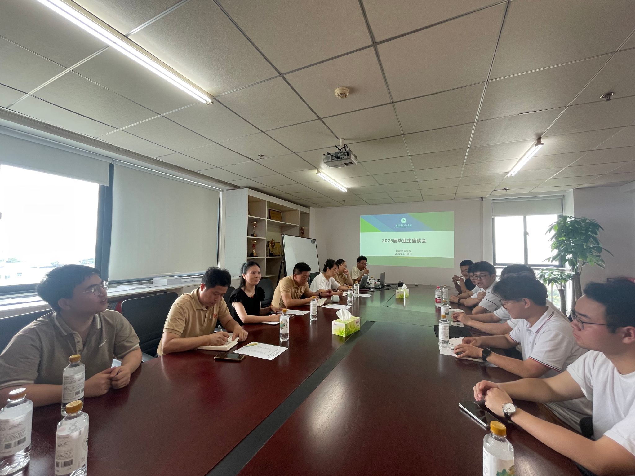 6月18日上午,学院在919会议室召开2025届毕业生座谈会,智能制造学院领导班子成员与2025届毕业生代表亲切交流,共话成长与发展。学校教务部副部长杜晓宇参加座谈,活动由副院长汪芳主持。