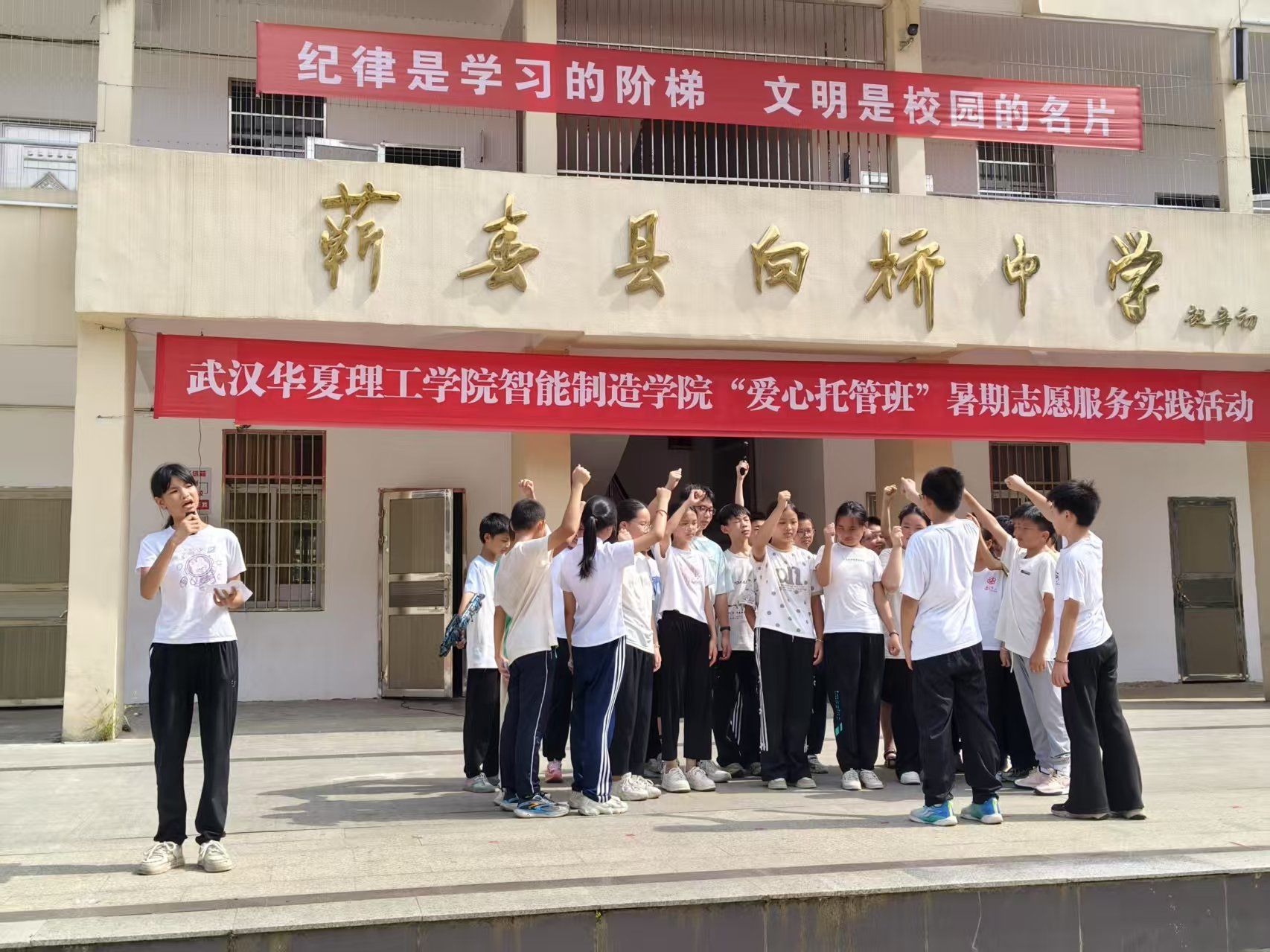 7月15日,beat365官方网站智能制造学院“智”愿有我“青春领航”支教团,在蕲春县团委、向桥乡团委与向桥中学的支持下,圆满完成汇报演出,为为期15天的支教历程画上句点。