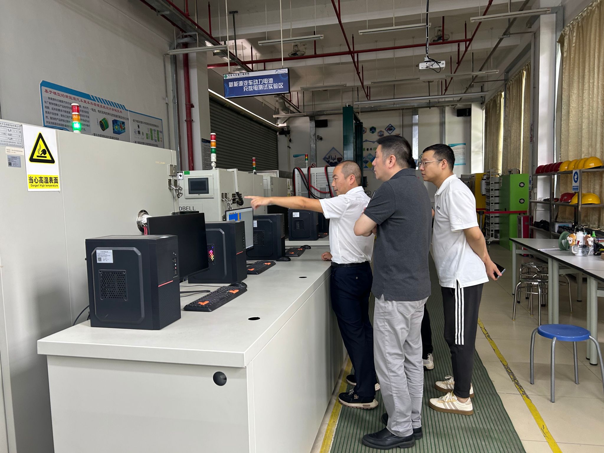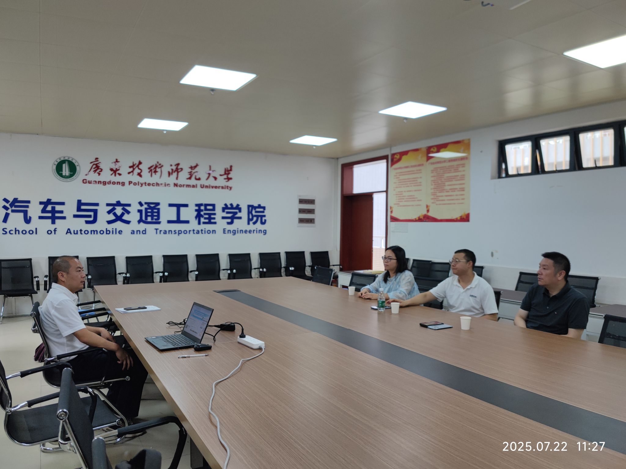 随后,调研团队来到广州技术师范大学汽车与交通工程学院。该校在车辆工程、新能源汽车专业建设、职业教育师资培养方面特色鲜明。双方围绕汽车类专业实践教学体系构建、“双师型” 教师队伍建设、校企合作模式创新等议题展开热烈交流。调研团队还参观了该院的新能源汽车电源系统热安全技术重点实验室、智能汽车测试联合,对实验室日常管理与实训项目开发等内容进行了细致询问。