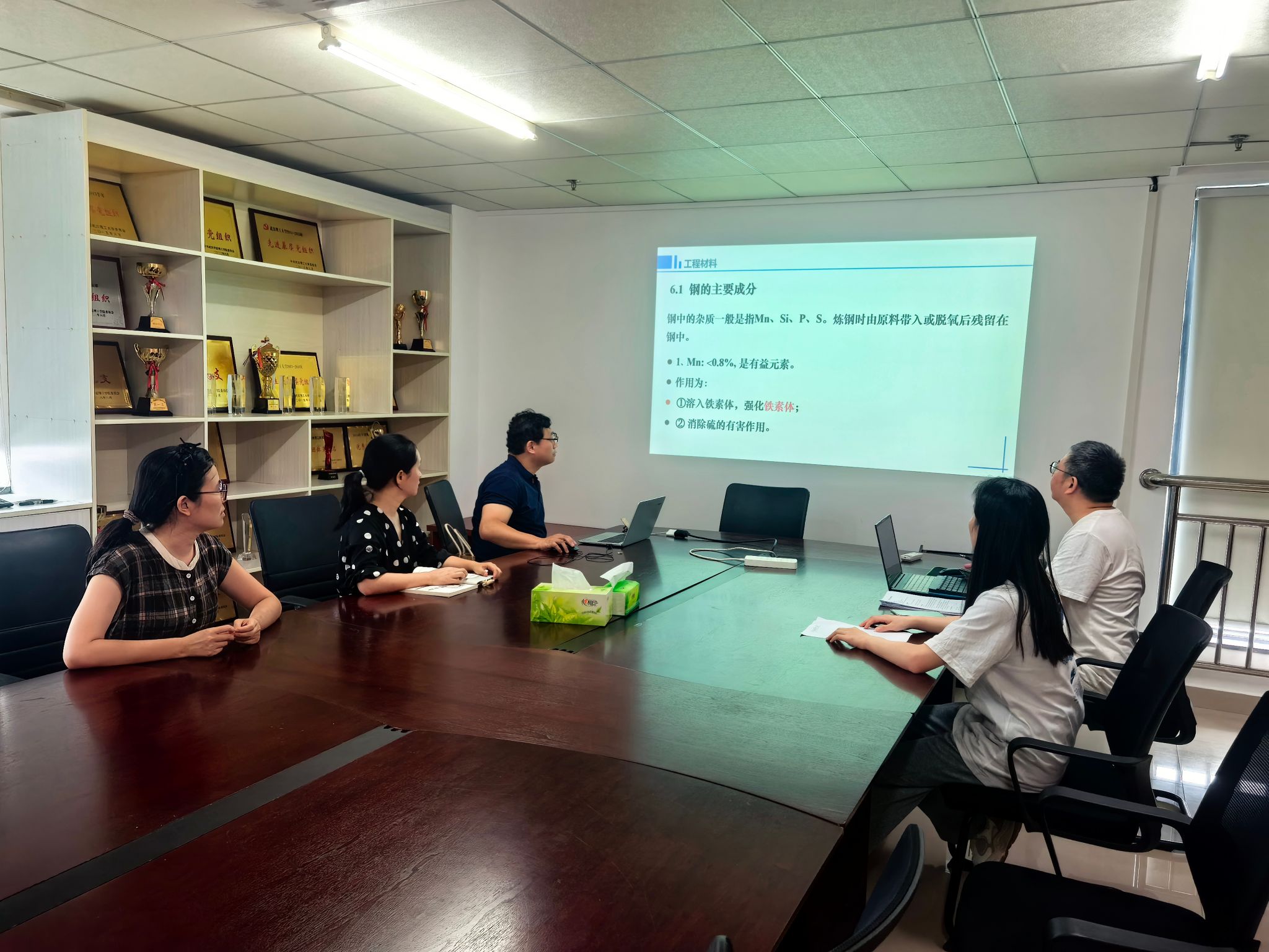 张琳琅老师针对材料成型原理中的焊接气孔问题,深入剖析产生原因,讲解了焊接参数调控、焊材预处理等防治措施;柯鑫老师围绕工程材料中的合金钢,详细解读其主要成分及成分对材料性能的影响机制;熊琛琛老师则以焊接机器人课程为核心,演示焊接路径设置的编程方法与优化技巧。