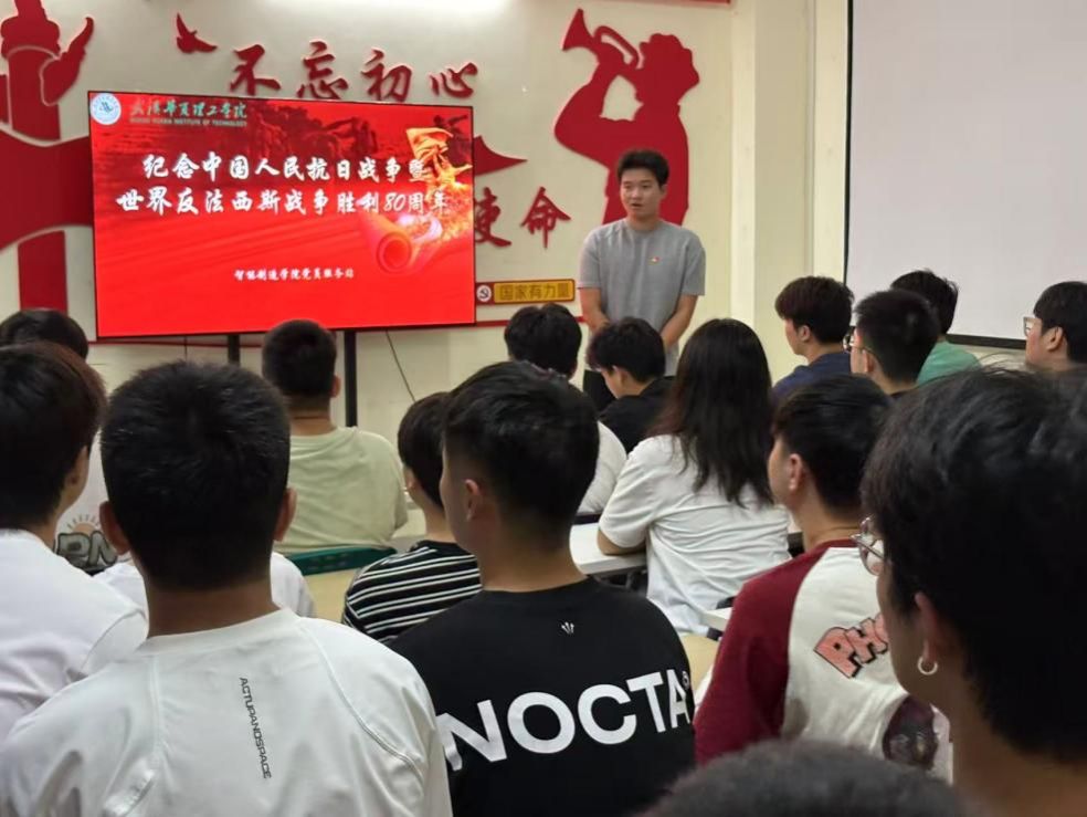 9月2日,智能制造学院党员服务站在二号楼学生社区,开展了一场以“纪念中国人民抗日战争暨世界反法西斯战争胜利80周年”为主题的政治学习。此次活动由学院党组织员祝炜黎、党员服务站负责老师陈张柱引领大家开展,旨在引导广大学生党员铭记历史、缅怀先烈、珍爱和平、开创未来,进一步坚定理想信念,厚植爱国情怀。活动反响热烈,现场学习氛围庄重而浓厚。