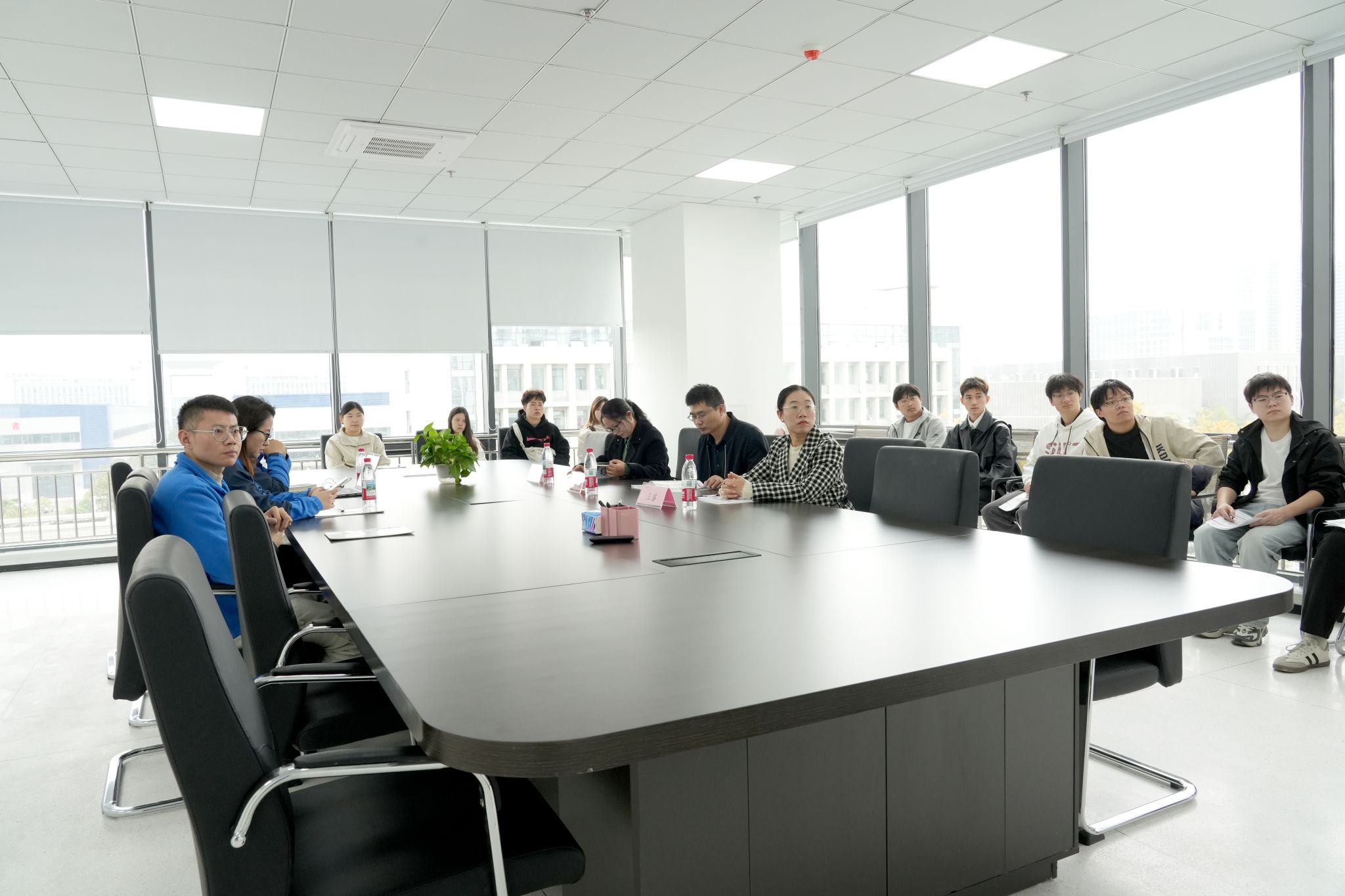 参观活动接近尾声时,刘宇学长在公司会议室与学生们进行了座谈交流,并针对即将毕业的学生提出了具体的工作要求与心态建议。刚进入职场,大家要学会从“学生”向“职场人”转变,放下浮躁心态,以谦逊的态度主动学习。生物仪器研发对精度与安全性要求极高,任何细微的失误都可能导致严重后果,因此必须培养严谨细致的工作作风;同时,仪器研发是团队协作的过程,要学会沟通配合,发挥自身优势,与团队共同推进项目进展。他还鼓励学生们在校期间要扎实学好专业课程,多参与实践项目,提升解决实际问题的能力,为未来入职做好准备。“母校培养了我,如今我希望能为母校的人才培养出一份力,也期待未来能有更多学弟学妹加入我们的团队,共同为生物科技行业发展贡献力量”,学长真诚地说道。