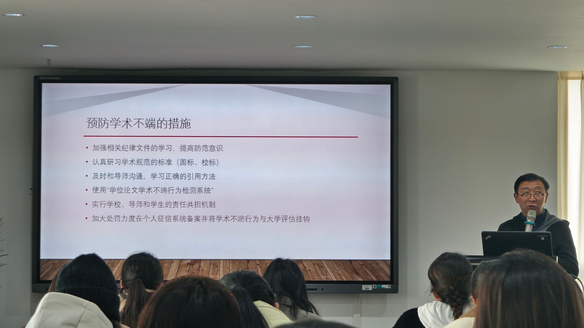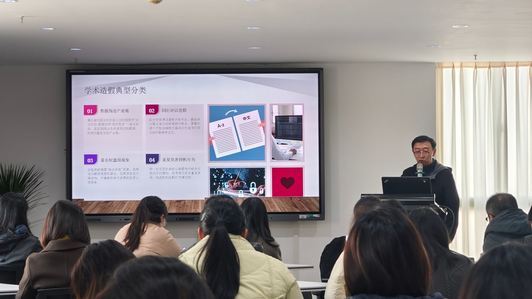 讲座上,王革教授系统梳理了学术不端的主要类型,涵盖抄袭剽窃、伪造和篡改研究数据、一稿多投等常见问题。随后,王革教授选取了国内外学术领域具有典型代表性的学术不端案例,从案例背景、违规细节、处理结果及社会影响等方面展开剖析,以真实的案例警示全体教师坚守学术底线的重要性。针对如何预防学术不端行为,王革教授提出了一系列切实可行的措施。他强调,教师作为学术研究的主体,应树立正确的学术价值观,强化自身责任意识,自觉抵制各类学术不端行为。