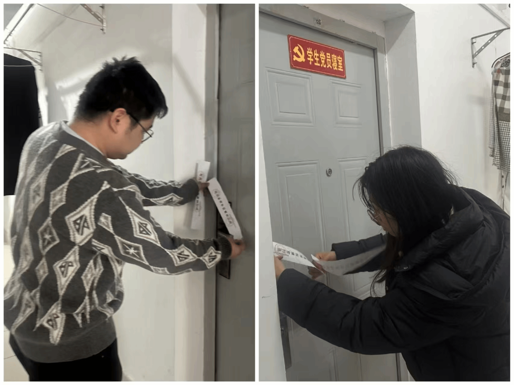 在现场,陈张柱、李娇等老师们和学生干部分工协作,仔细核对宿舍信息,认真对宿舍门窗、水电等设施进行了安全检查,确保不留安全隐患,并为每一间无人宿舍贴上封条。此次工作不仅筑牢了假期宿舍安全防线,更传递了学院对学生的关心与责任,让同学们能够安心离校、舒心过年。