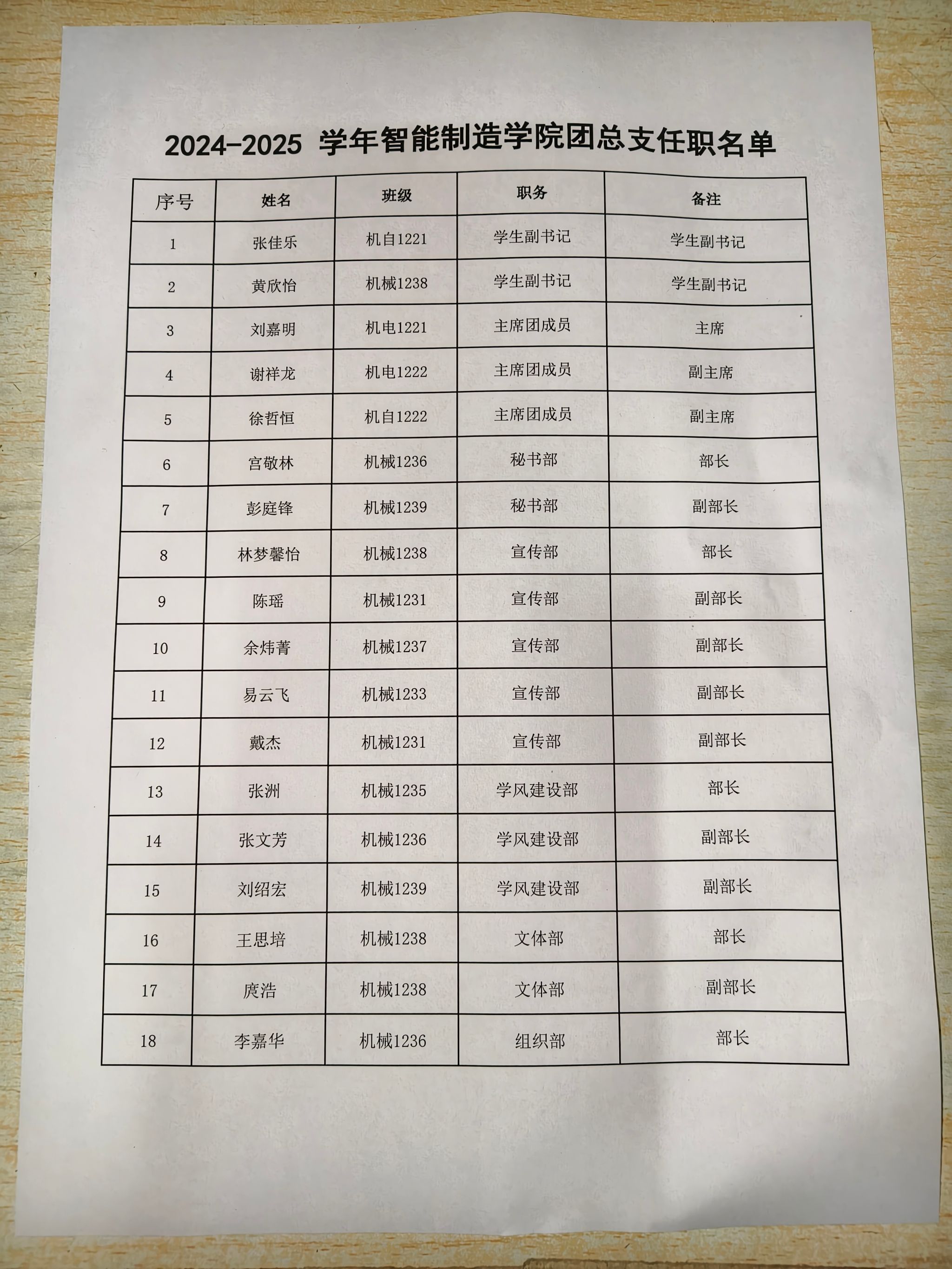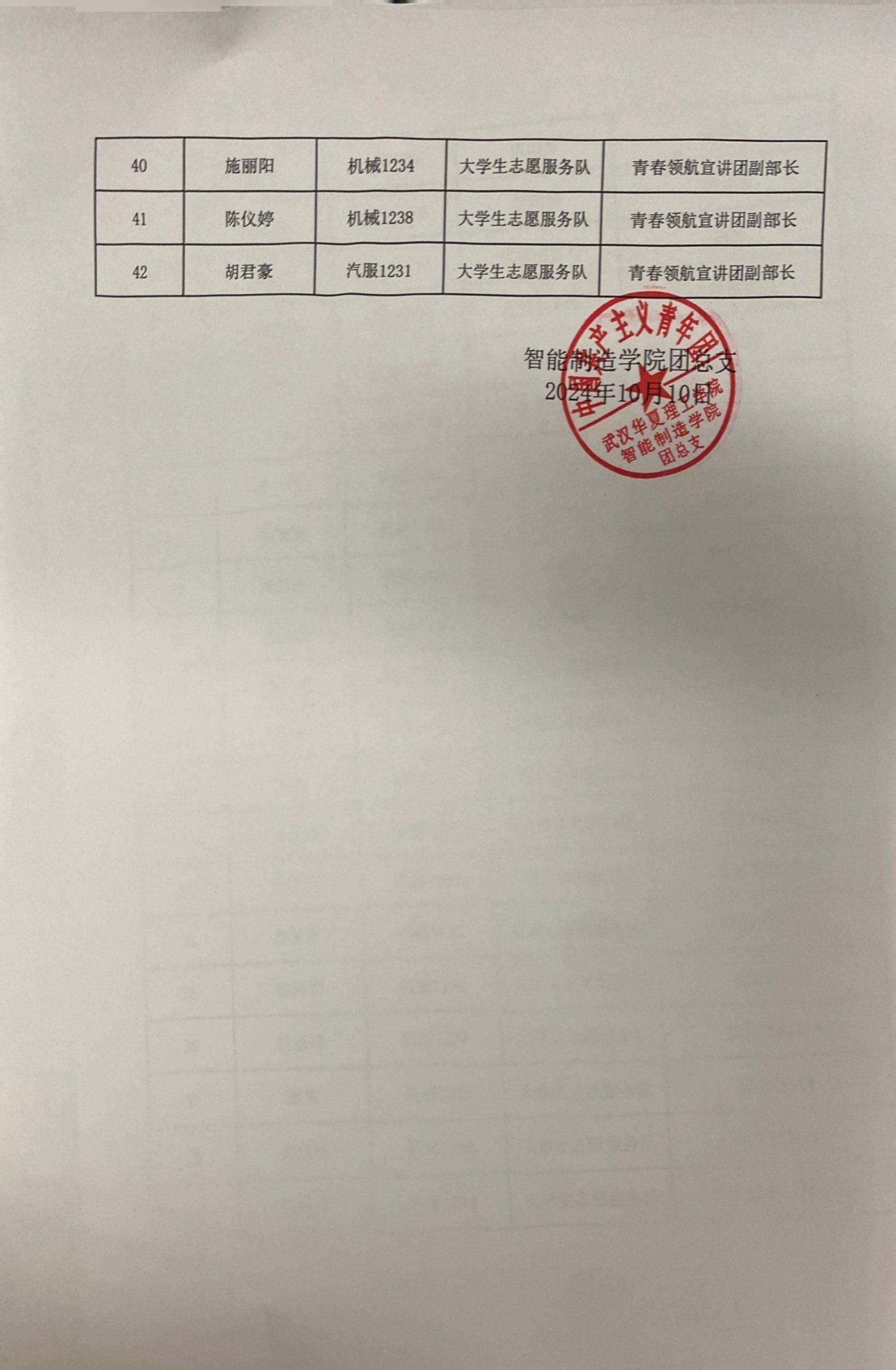 经10月10日至10月13日公示,关于2024-2025学年智能制造学院团总支换届名单未收到任何异议,现将确认名单公布: