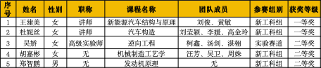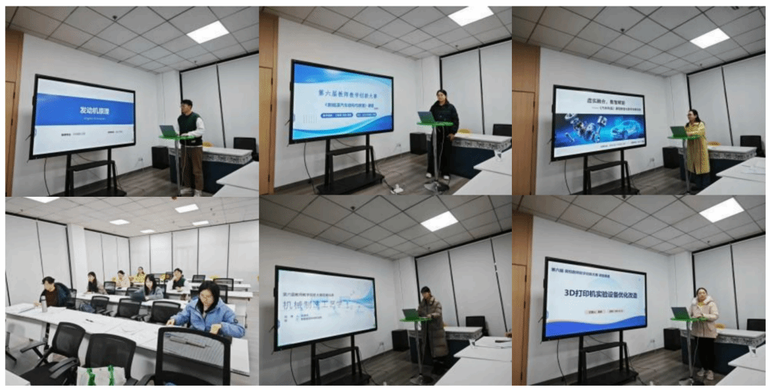 比赛现场,各位参赛教师精神饱满、各展所长,呈现了一场场精彩的教学展示。郑智鹏老师以《发动机原理》课程为依托,结合工程实例,深入浅出地讲解了发动机工作机制的核心知识点,通过虚拟仿真演示让抽象的原理知识变得直观易懂;王建美老师在《新能源汽车结构与原理》的教学展示中,紧密结合行业发展前沿,将新能源汽车技术的最新成果融入课程内容,注重培养学生的行业洞察力与实践应用能力;杜妮丝老师讲授的《汽车构造》课程,采用虚拟模型与多媒体教学相结合的方式,清晰梳理了汽车关键部件的结构与功能,互动式教学环节充分调动了学生的学习积极性;胡嘉彬老师围绕《机械制造工艺学》,聚焦工艺优化与效率提升,通过案例分析引导学生思考机械制造中的实际问题,展现了扎实的专业功底与丰富的教学经验;吴娇老师以《3D打印机实验设备优化改造》为主题,分享了将科研成果转化为教学内容的实践经验,突出了实践教学在培养学生创新能力中的重要作用,展现了教学与科研融合的独特魅力。