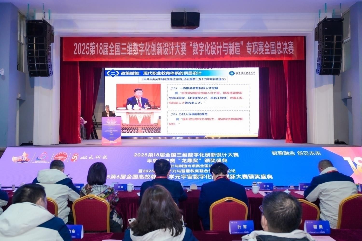随着2025第18届全国三维数字化创新设计大赛年度总决赛“龙鼎奖”颁奖盛典落下帷幕,我院赛事负责人吴娇老师于12月20-22日赴北京建筑大学(西城校区),全程参与本次国赛系列会议,并实地走访了该校特色实验室,为学院三维数字化竞赛培育与实践教学积累了宝贵经验。
