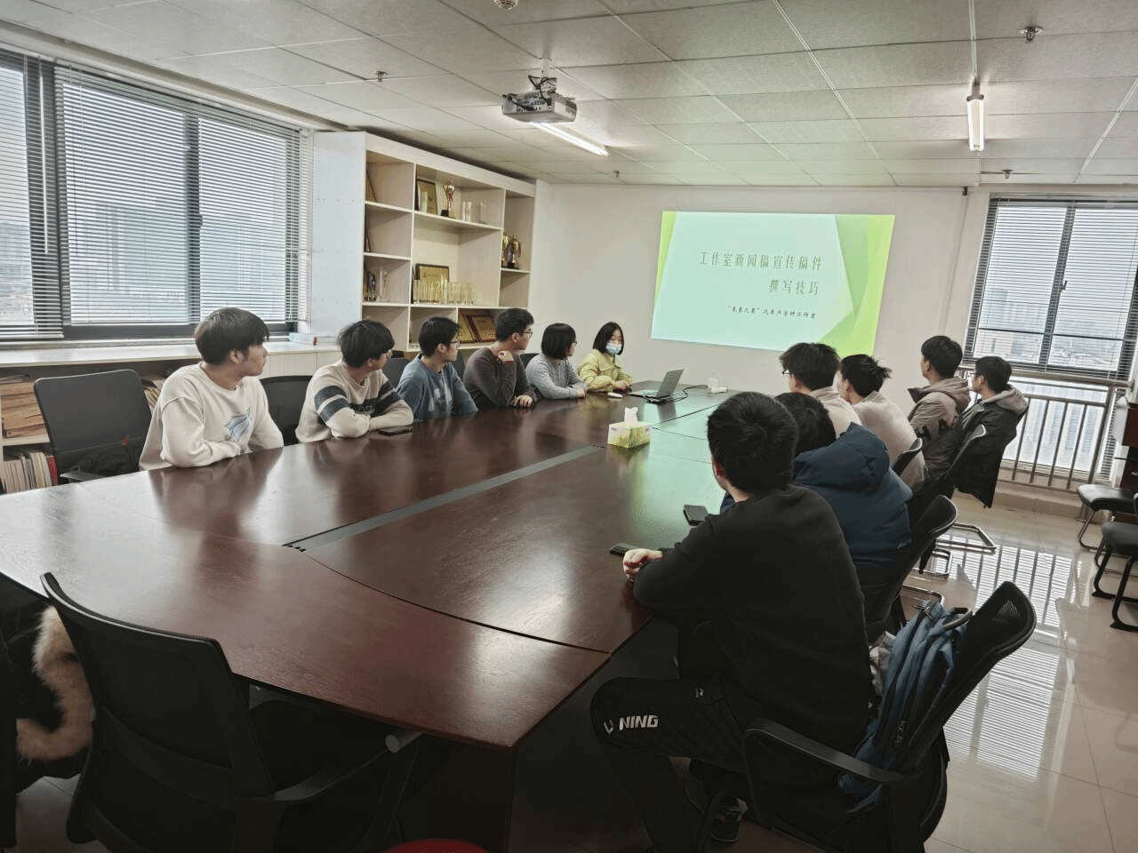 2023年12月18日中午13:00,未来之星汽车产学研工作室在综合楼919会议室开展宣传稿写作技巧培训会。会议由工作室联络员高金玲老师主持,杜妮丝老师和工作室宣传工作团队的学生成员参加。