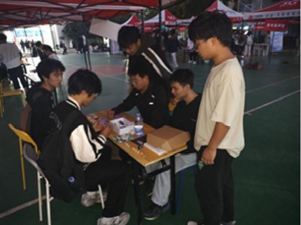 在众多精彩活动中,π团队先进制造技术工作室旗下的机械模型社的单人挑战项目尤为引人注目。工作室成员精心部署,此次挑战共设四关,全面考验同学们的空间思维与动手能力。第一关,同学们全神贯注地搭建正方体,沉稳开启挑战之旅;第二关的关键球环节,对空间想象与构建能力提出了更高要求,同学们需精心构思,巧妙搭建;第三关的正三棱锥,需要同学们熟练运用软件功能,精准操作;而第四关的正 12 面体,则成为终极考验,挑战着同学们的极限。每一位勇敢参与挑战的同学都全力以赴,将简单的零件逐步转化为精美复杂的模型,充分展现出科技与智慧碰撞的独特魅力,为每位尝试的同学种下了机械模型的实质比赛过程中,现场气氛热烈,吸引了众多同学驻足观看,大家为参赛者的精彩表现喝彩,也为遇到困难的同学加油鼓劲,形成了良好的互动氛围。