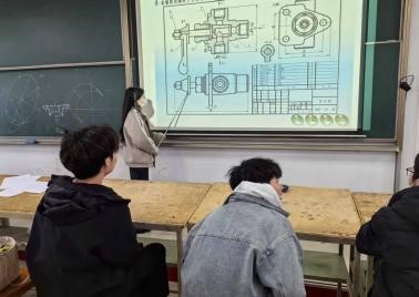 课程伊始,机自1246班的朱慧仪凭借丰富的专业知识和清晰的讲解,迅速抓住了同学们的注意力。她从工程制图的基本概念入手,用生动形象的示例,将抽象的理论知识变得通俗易懂,让学们对工程制图有了初步的认识。