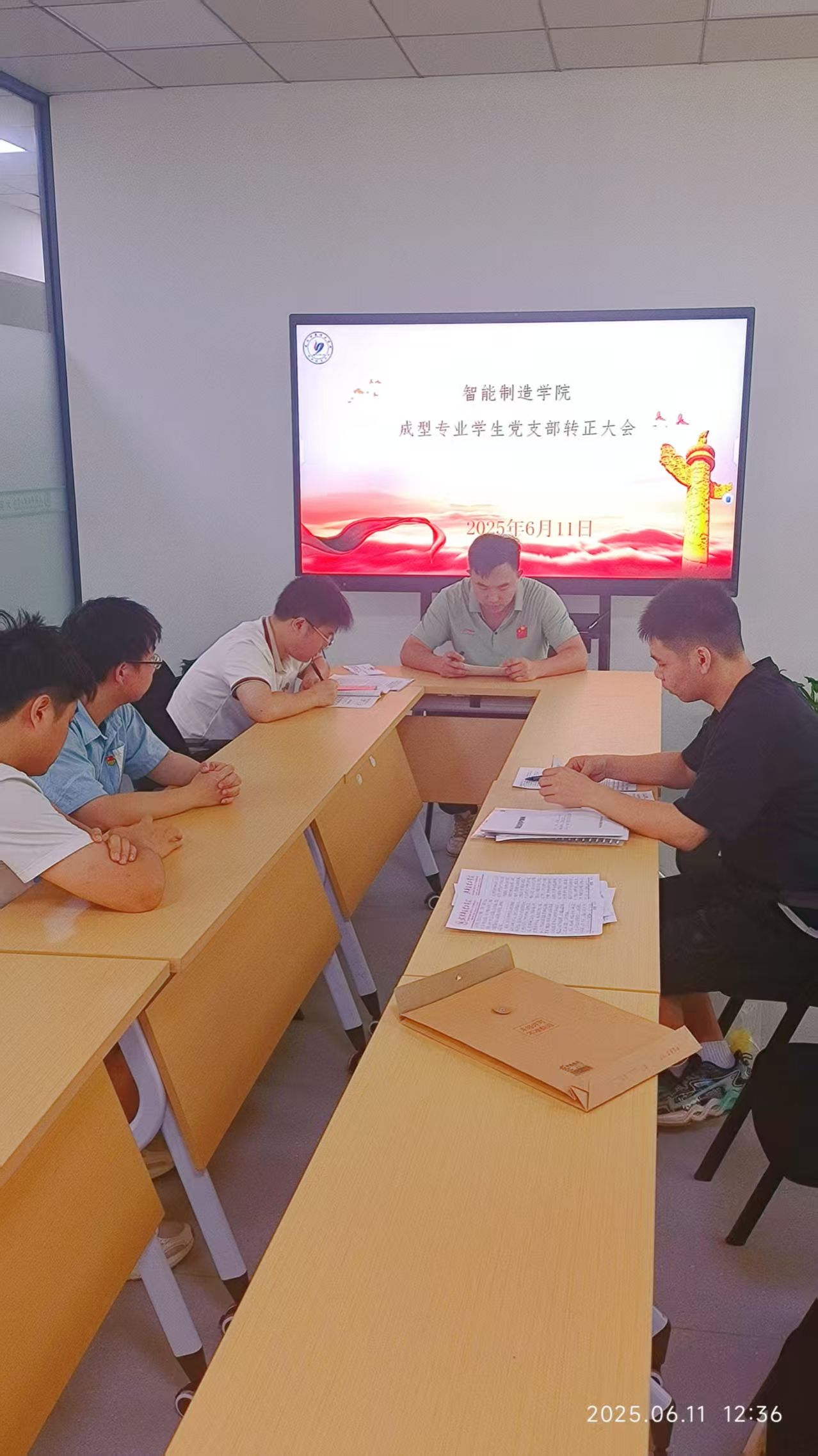 6月11日,成型学生党支部召开支部大会,对刘江锋同志预备党员转正事宜进行讨论和表决。支部10名党员全员出席,其中7名正式党员到会行使表决权,会议符合规定人数要求,顺利开展。