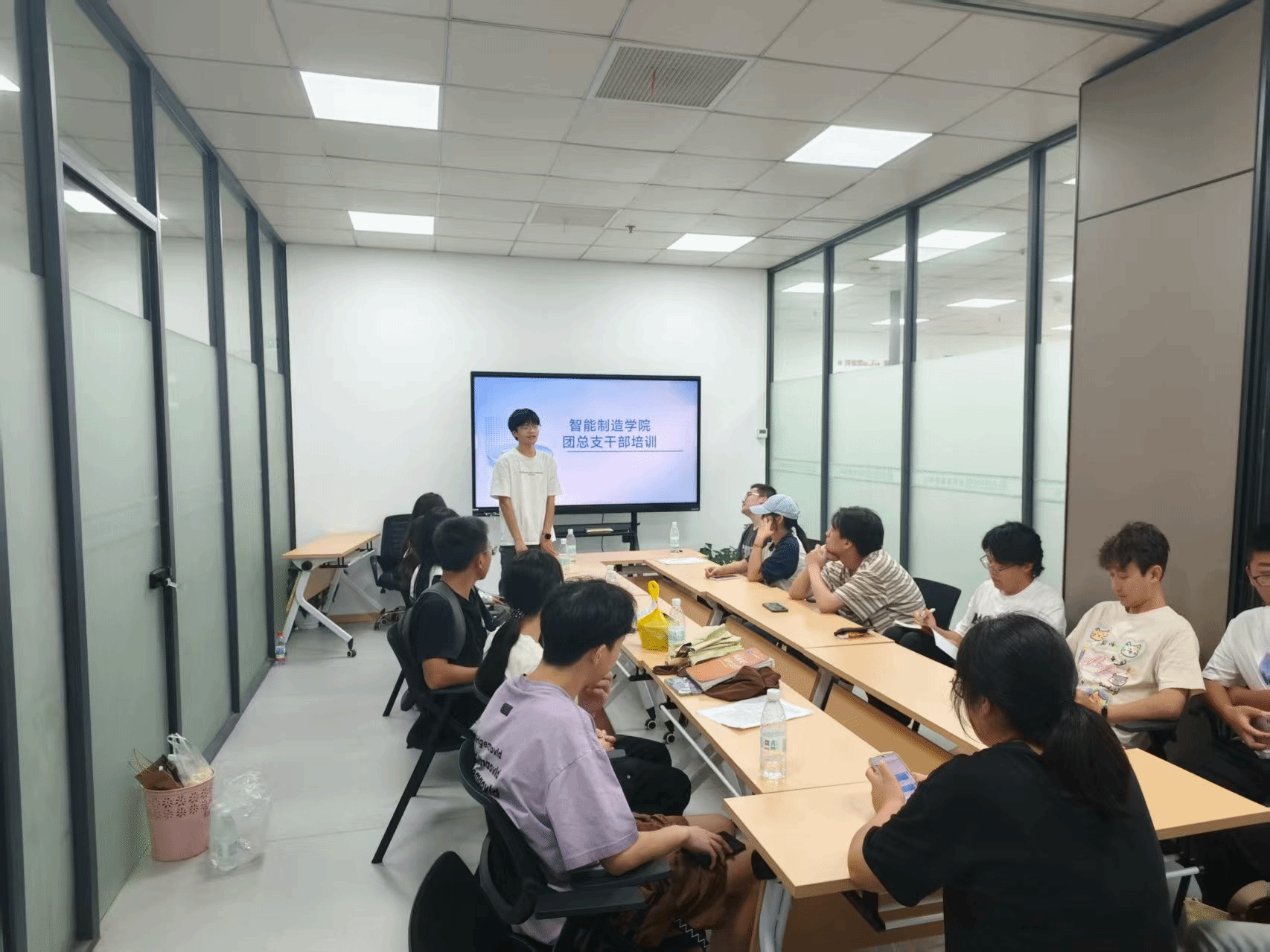 9月11日中午,智能制造学院在综合楼一楼会议室组织开展了团总支干部培训活动,学院各部门负责人参与培训。本次培训聚焦团干部核心能力提升,主席团成员聂宇辰通过专题讲座、案例分析、分组研讨等形式,系统讲解了团总支干部工作实务、活动策划与组织、新媒体宣传技巧等内容,分享团务工作经验,帮助干部们明确职责定位,掌握开展团工作的方法技巧。