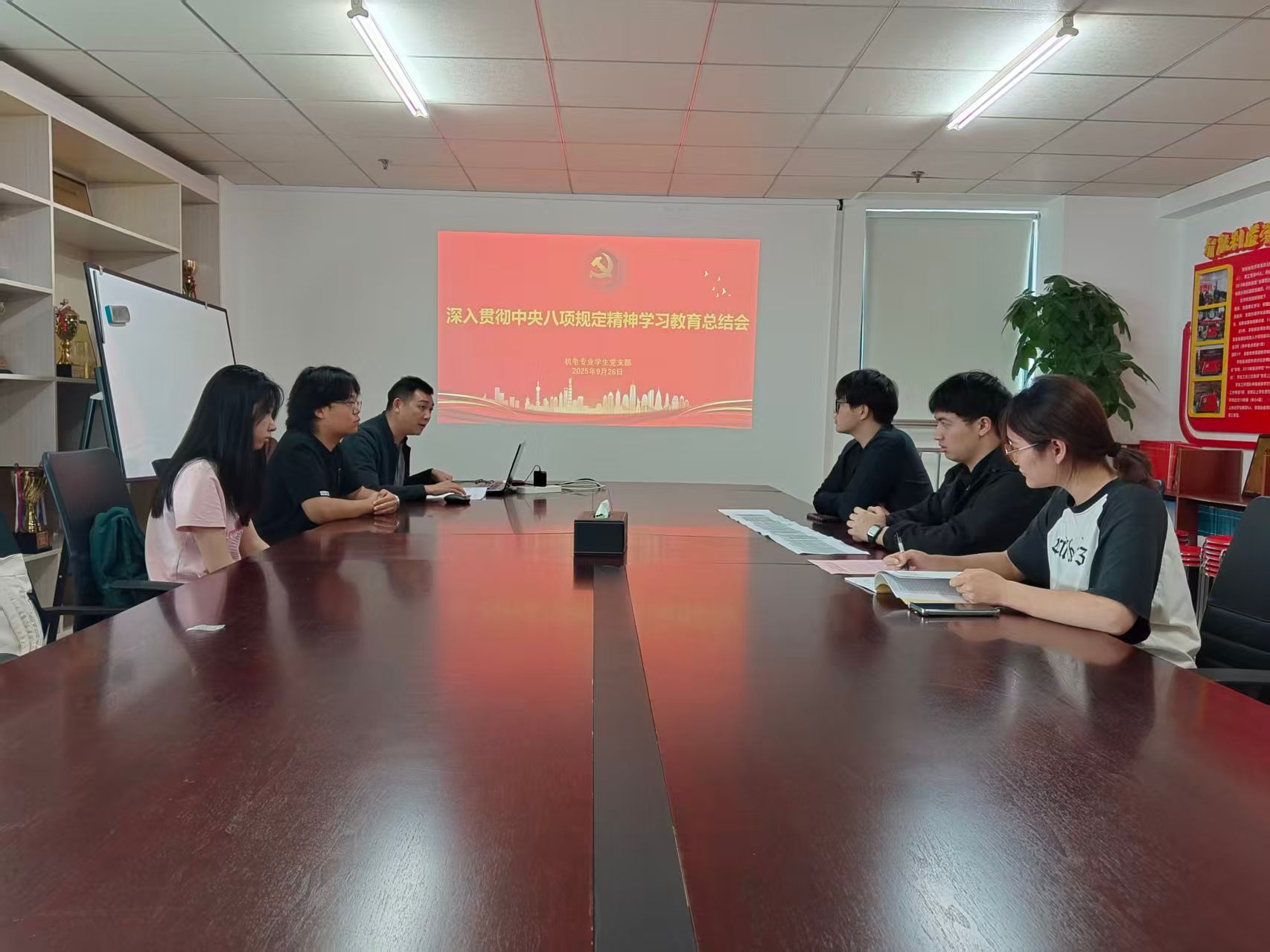 9月26日,智能制造学院机电专业学生党支部组织召开 “深入贯彻中央八项规定精神学习教育总结会”,会议由祝炜黎老师主持。