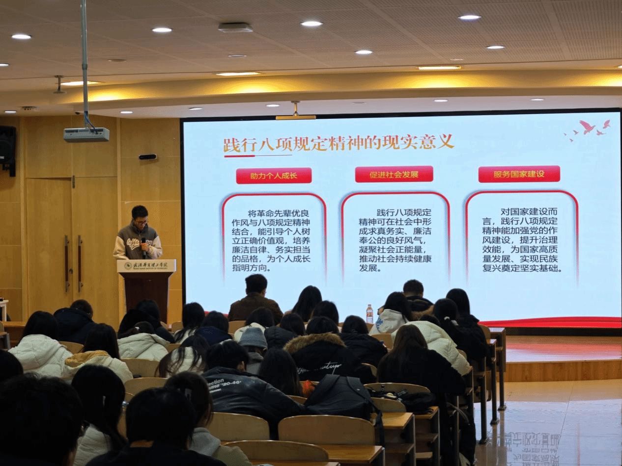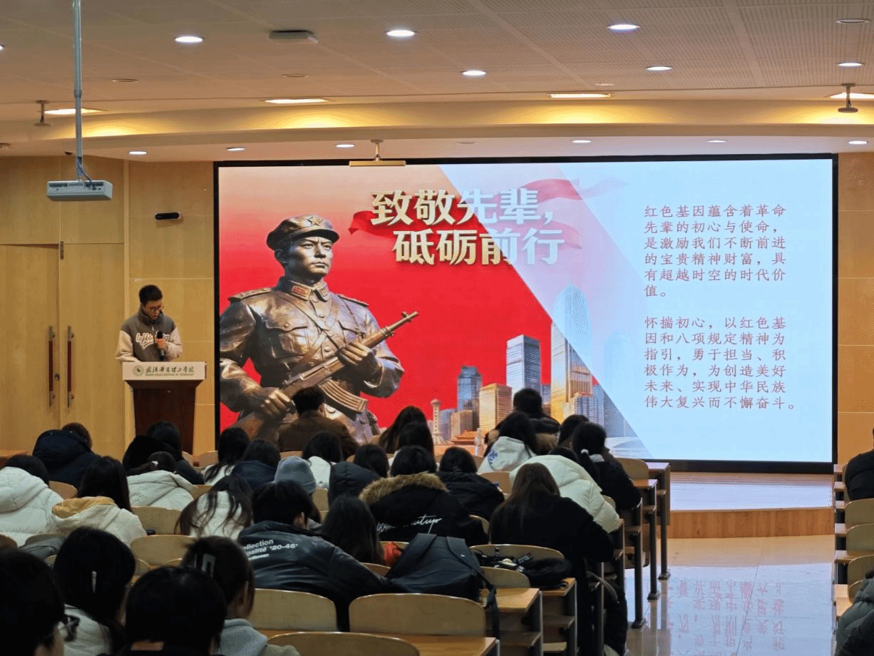为深入弘扬革命传统,强化学生党员的党性修养与作风意识,12月25日中午,“传承红色基因,践行中央八项规定精神”红色之旅宣讲会暨表彰大会在教学楼2-201隆重举行。本次活动面向各学院学生党员开展,由土木建筑工程学院与智能制造学院依次进行主题宣讲。