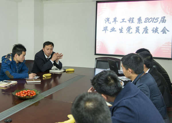 4月9号,以“回顾校园生活,畅谈大学收获,展望未来人生路”为主题的2015届毕业生党员座谈会在0702顺利召开。系党总支书记刘源老师,系教学办主任曾志娥老师,学工办郭杰老师和11级党支部书记杨海龙老师出席了会议。参加座谈会的毕业生党员代表一共12位同学。