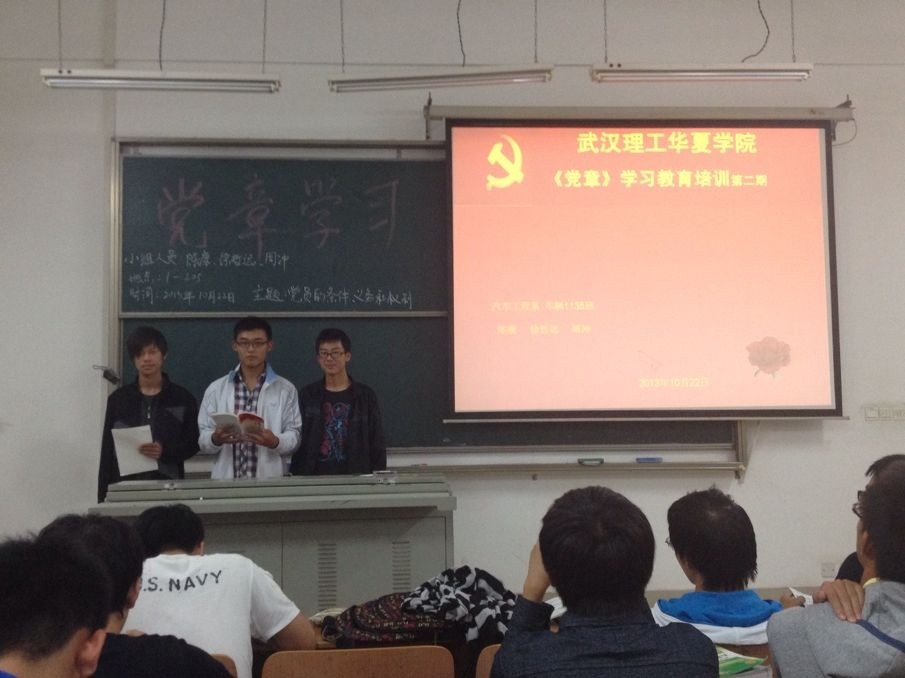 刚刚进入大学,党章学习是必要的。2013年10月22日晚7点,汽车工程系车辆1134和1135的同学在一教205进行了第二次党章学习活动。
