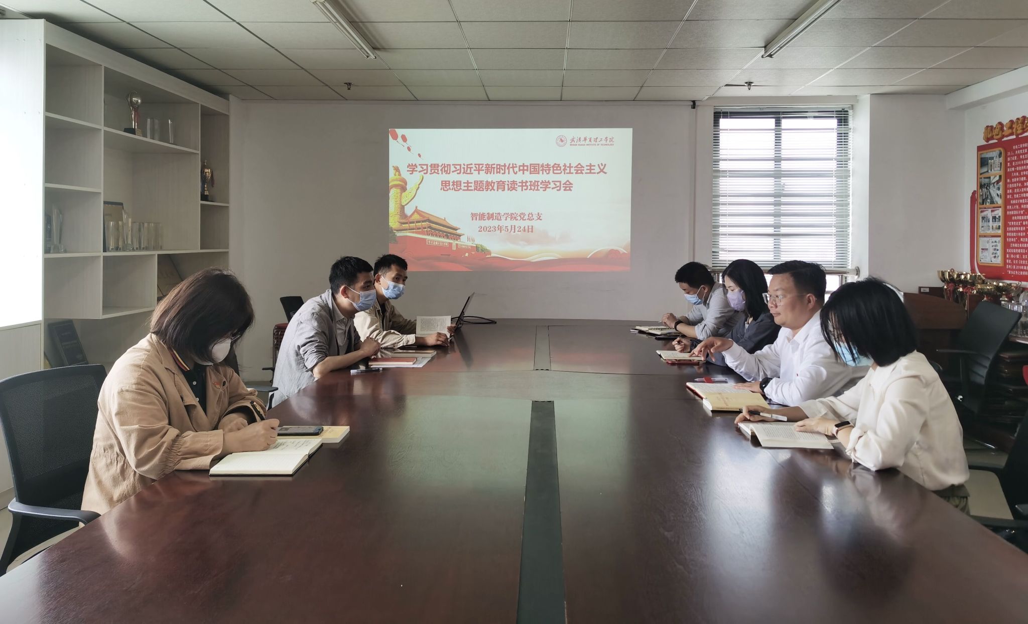 5月24日上午,智能制造学院党总支在综合楼919会议室召开学习贯彻习近平新时代中国特色社会主义思想主题教育读书班学习会,学院党总支委员全体成员参会,会议由党总支书记张亮主持。
