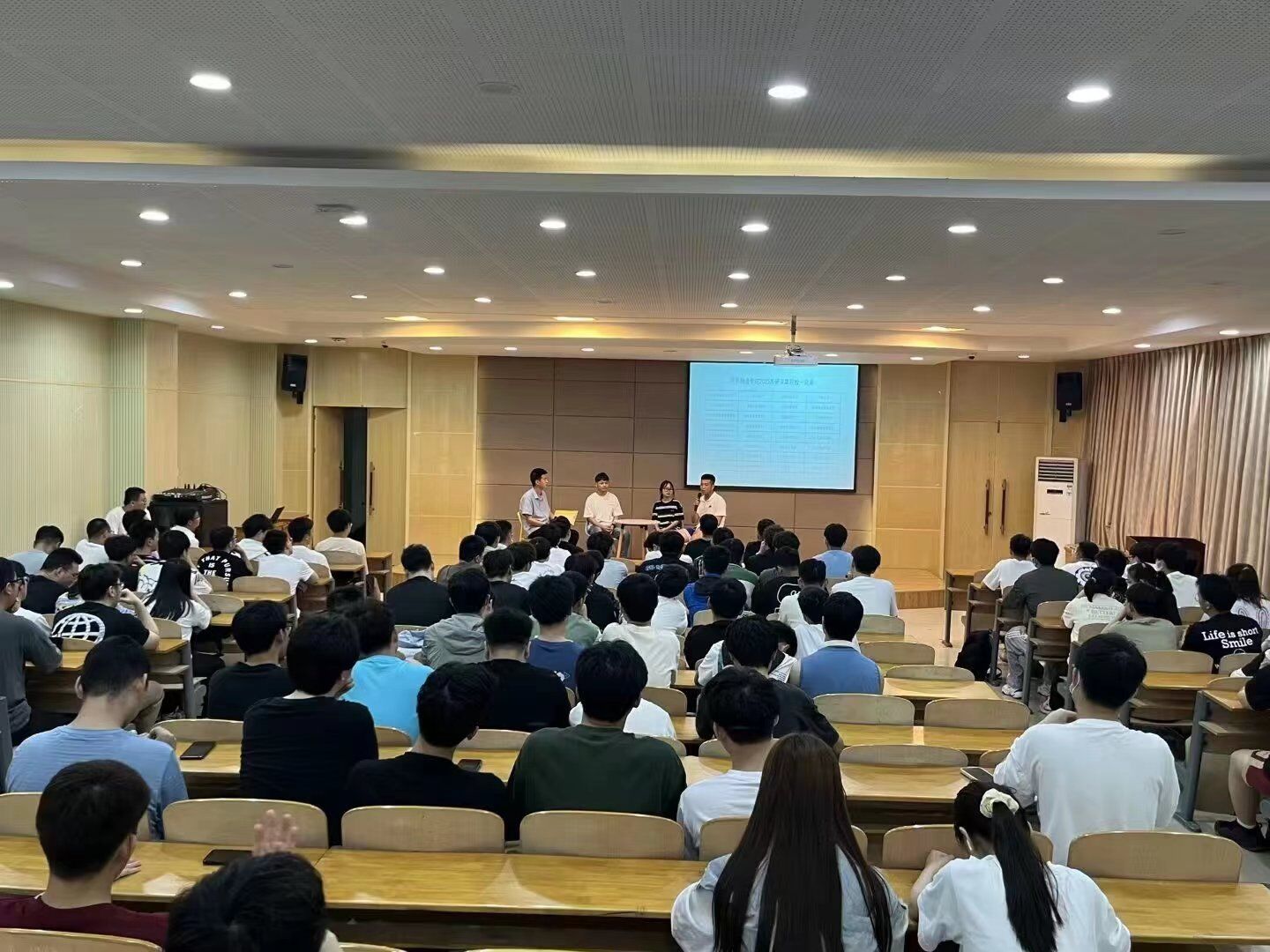 分享会上,成功上岸的车辆工程专业王传龙、廖文凯、沈懿凡、材料成型及控制工程何宗意,分别围绕考研的心路历程、重点科目的学习方法、考研复试具体流程以及考研目标学校的确定等方面进行了分享,并与到场的学弟学妹们进行交流,对大家提出的问题进行了耐心、细致的解答,并鼓励同学们要坚定目标、放松心态、不忘初心、努力奋斗。