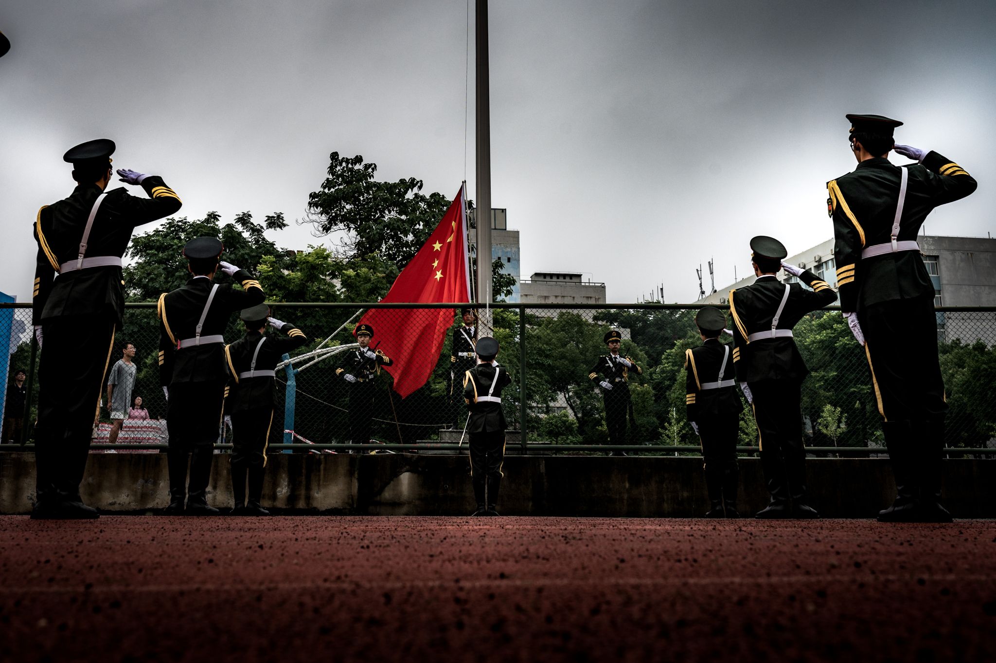 早上6点30,全体师生准备就绪,校国旗护卫队队员护送着鲜艳的五星红旗,昂首挺胸走向主席台。伴随着庄严的中华人民共和国国歌,五星红旗冉冉升起,全体新生面向国旗行注目礼,表达了对伟大祖国的无限敬意。