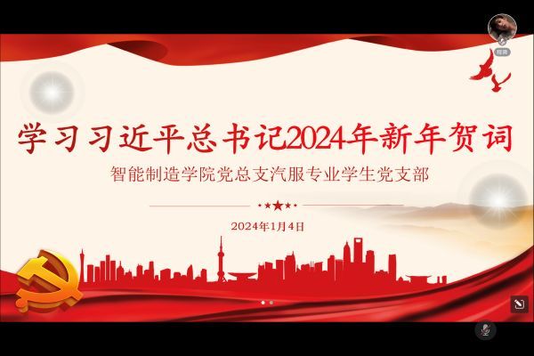 1月4日,智能制造学院党总支汽服专业学生党支部在腾讯会议开展习近平总书记2024新年贺词的学习。会议由支部组织委员王琪同志主持。