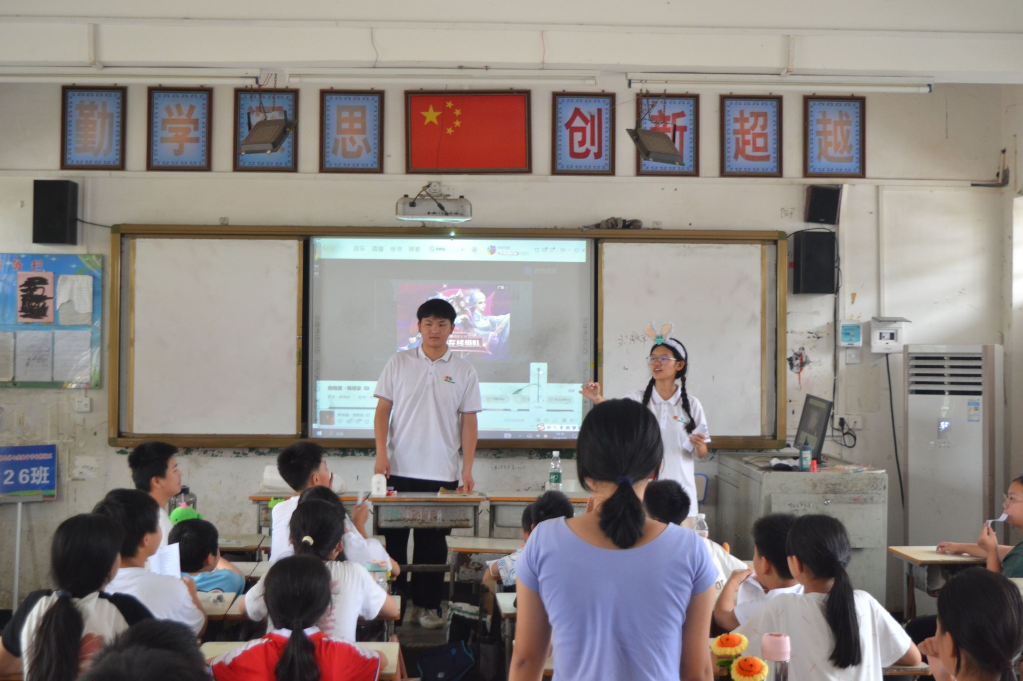 为增进学生对语文学科的了解,在“趣味语文”课堂中,志愿者侯雨忻从语言的历史文化、语言的写作应用等方面进行授课。综合提高学生的语文学科素养并引申到修辞手法的讲解,充分挖掘学生的语言天赋、激发学习兴趣,并采用用课堂小作文的形式检验学习成果。“这么短的时间里,同学们认真学习思考,这让我感到很欣慰,觉得自己的努力也有了很大的价值。”在她的精心策划下,孩子的对语文学科的兴趣被激发,领略到了语文作为国语特有的魅力。