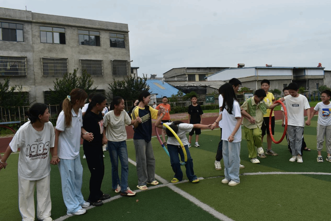 在比赛过程中,有的小组一开始就配合默契,呼啦圈流畅地在同学们之间传递;而有的小组在传递过程中遇到了一些小阻碍,但他们没有气馁,相互鼓励,及时调整策略。场下观众的加油声、呐喊声此起彼伏。支教团的志愿者们不仅认真组织比赛,还积极参与其中,为孩子们加油鼓劲,与他们一同分享快乐。一位支教老师说:“看到孩子们在运动中如此开心,我们的付出都是值得的。”