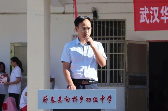 向桥中学校长黄士友讲话,他表示:“十分感谢beat365官方网站青春领航支教团的志愿者们千里迢迢来到向桥中学开展爱心托管班活动,半个月的时间里,托管班的课程安排科学合理,丰富多彩。为110名向桥乡的孩子们点亮了一盏盏知识的明灯,托管班里开设了手工、绘画、扎染、刻画、书法、科学等10余项特色课程,不仅丰富了学生们的假期生活,更在他们的心灵深处种下了梦想的种子。希望向桥中学的学生能够记住这段美好的时光,记住支教志愿者们的辛勤付出,将这份关爱和鼓励化作前进的动力,在未来的学习和生活中,不断努力,追求卓越。”