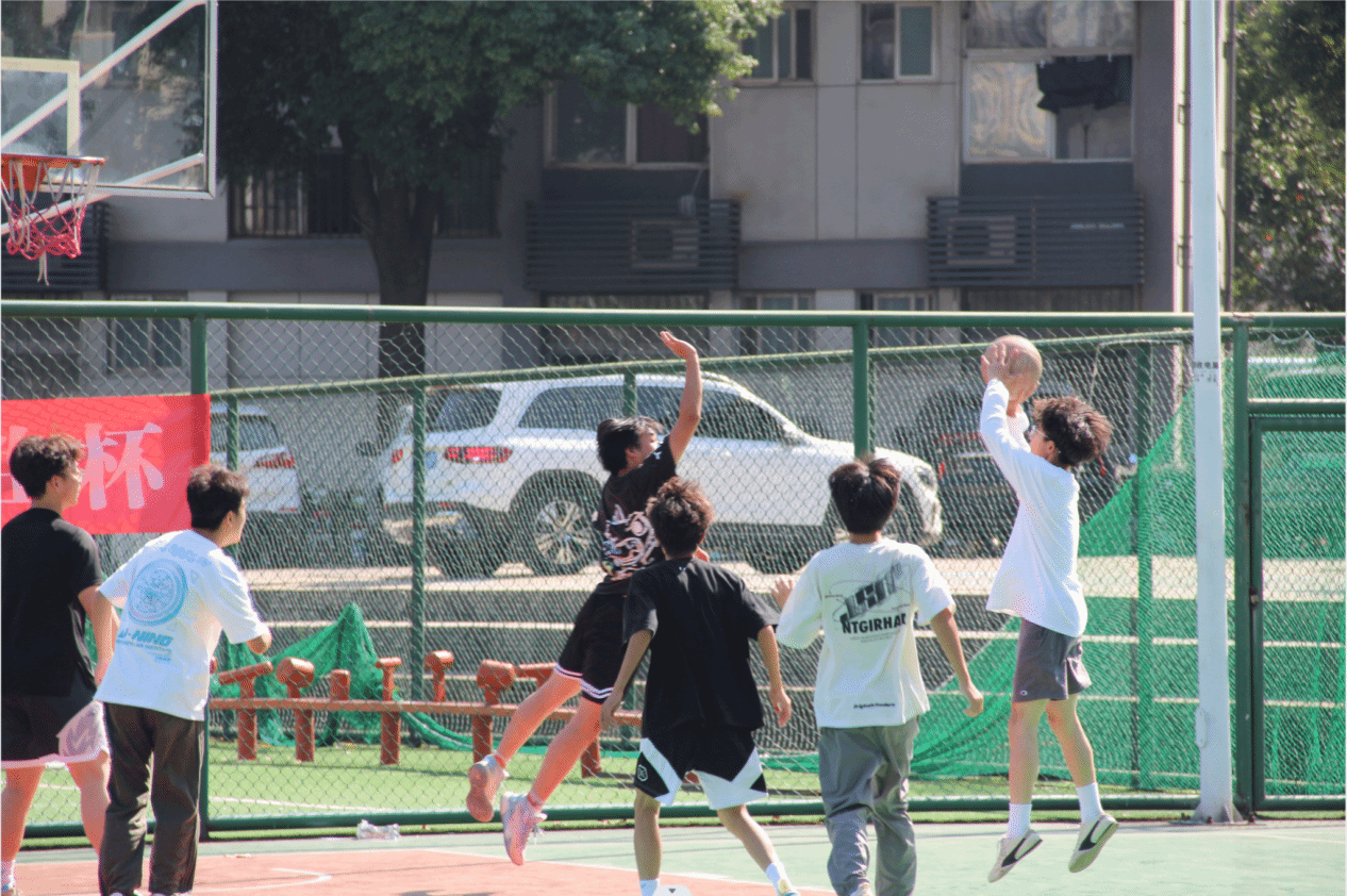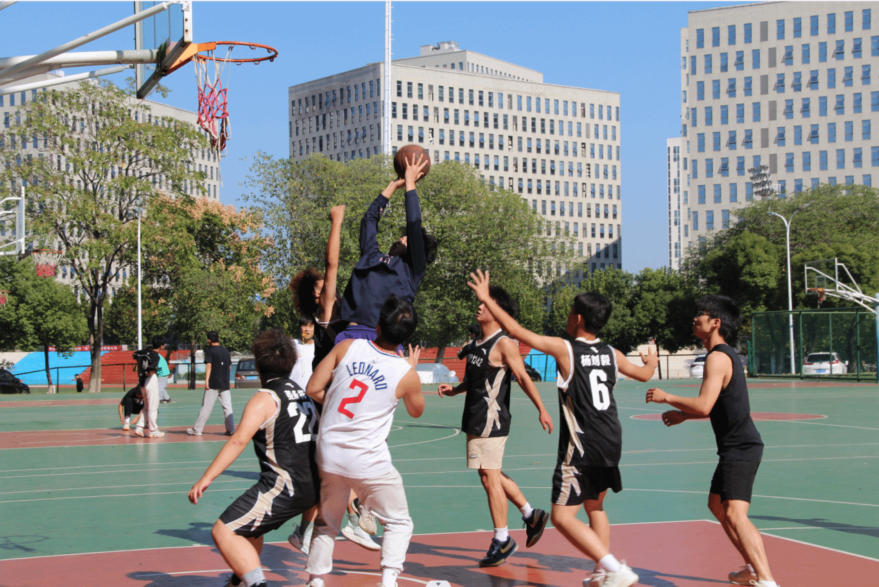 此次赛事采用多队同比制,比赛分为上下半场,每半场时长13分钟,除暂停外时间不停表,中场休息 3 分钟,多支队伍同时展开激烈角逐。尖锐的哨声响起,高高抛起的篮球瞬间点燃了全场的澎湃激情,篮球赛就此正式拉开帷幕。赛场上,同学们抢球、断球、防守、进攻,配合默契。他们严守硬对,激烈争夺,以默契的传球和完美的配合,展现出非凡的篮球技艺。