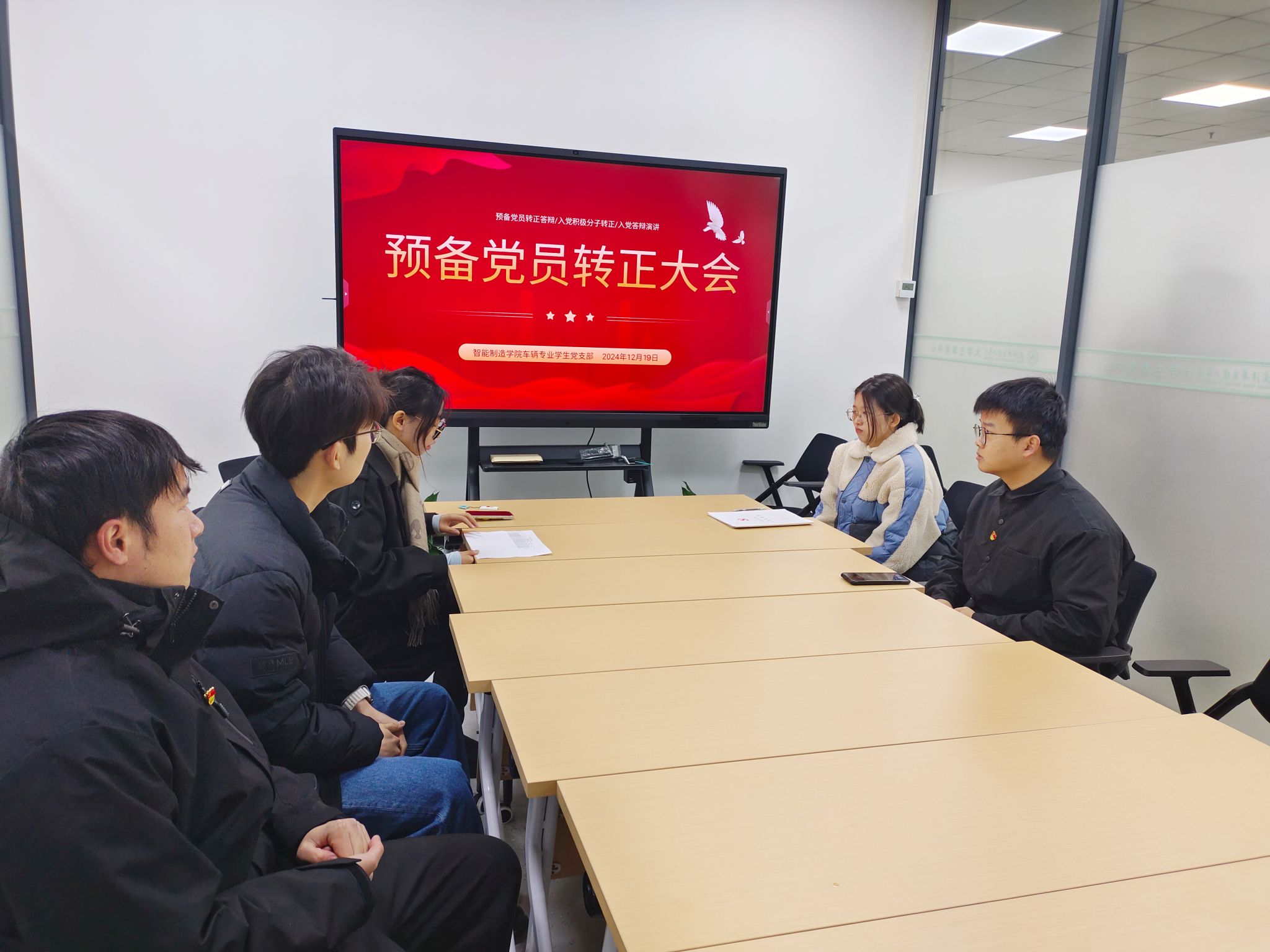 12月19日,车辆专业学生党支部在大学生事务中心会议室召开了预备党员转正大会。本次大会旨在审议并讨论预备党员沈鑫钰的思想和学习表现情况,以确定其是否符合转为正式党员的条件。会议由党支部书记李娇主持,全体党员及预备党员参加了此次大会。