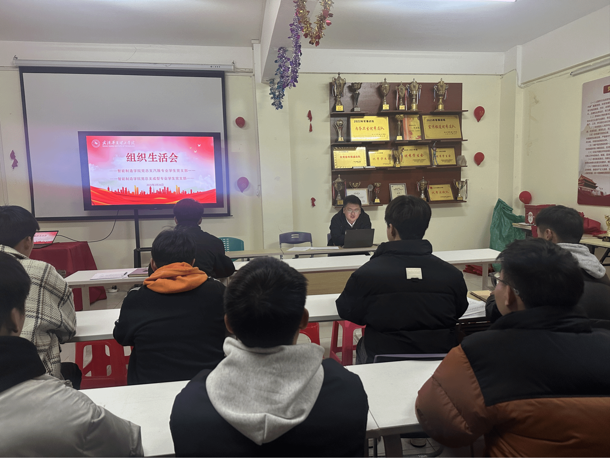 2月26日星期三,beat365官方网站智能制造学院党总支汽服专业学生党支部、成型专业学生党支部于二号楼学生社区成功召开组织生活会议,重点开展民主评议工作,旨在强化党员党性修养,提升党支部的凝聚力与战斗力。会议由汽服专业学生党支部书记周立华主持。