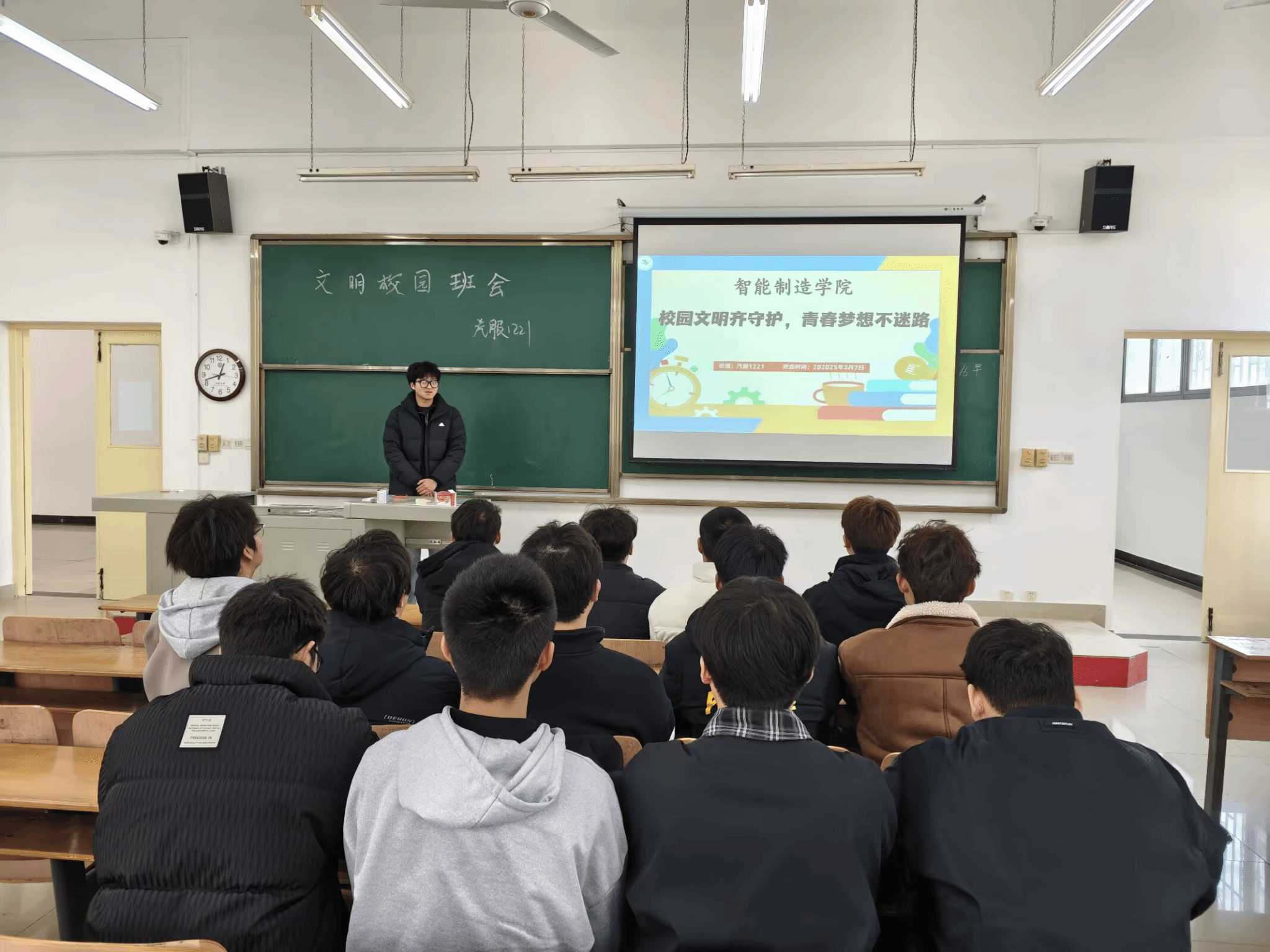 为积极响应学校文明校园建设号召,营造文明、和谐、美丽的校园环境,近日,智能制造学院组织各班级开展了形式多样、内容丰富的文明校园建设主题班会活动,取得了良好成效。