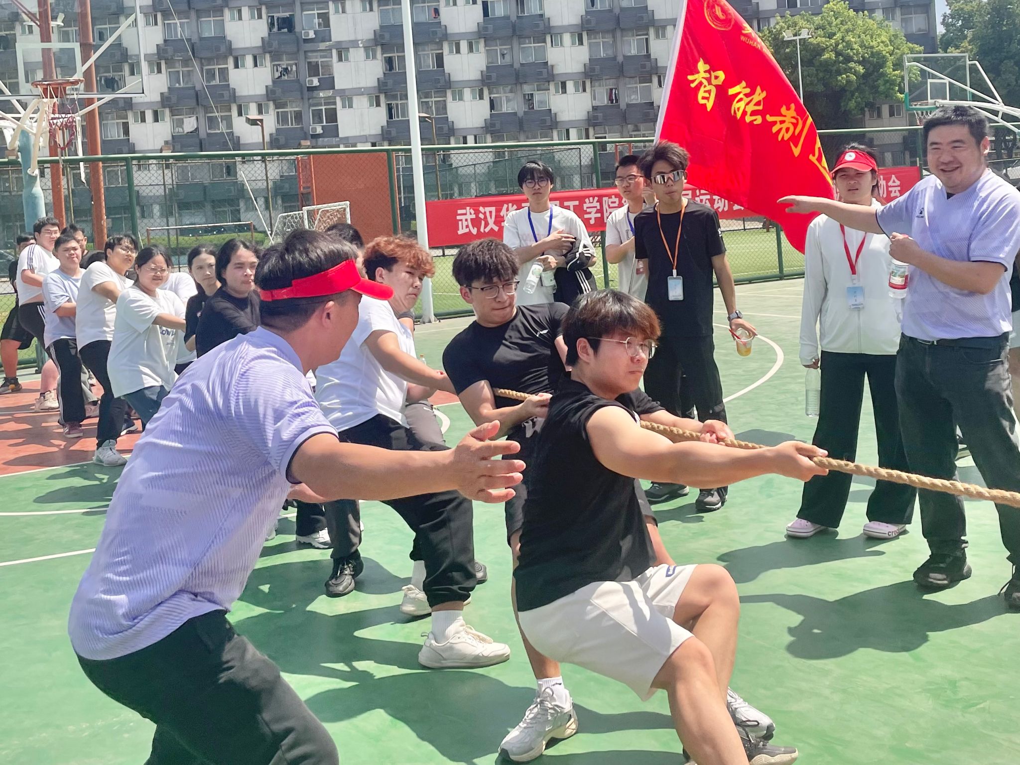 在beat365官方网站2025年春季运动会上,智能制造学院教职工团结奋进、斗志昂扬,其中辅导员马文明老师以饱满的热情和澎湃的激情成为华夏赛场上的耀眼明星。在拔河比赛中,他高声呐喊、奋力指挥,用坚定的信念和昂扬的斗志感染着每一位参赛队员,带领团队一路拼搏。他的激情不仅点燃了运动员们的斗志,更让现场学生们感受到了智能制造学院团结一心、永不言弃的精神力量。