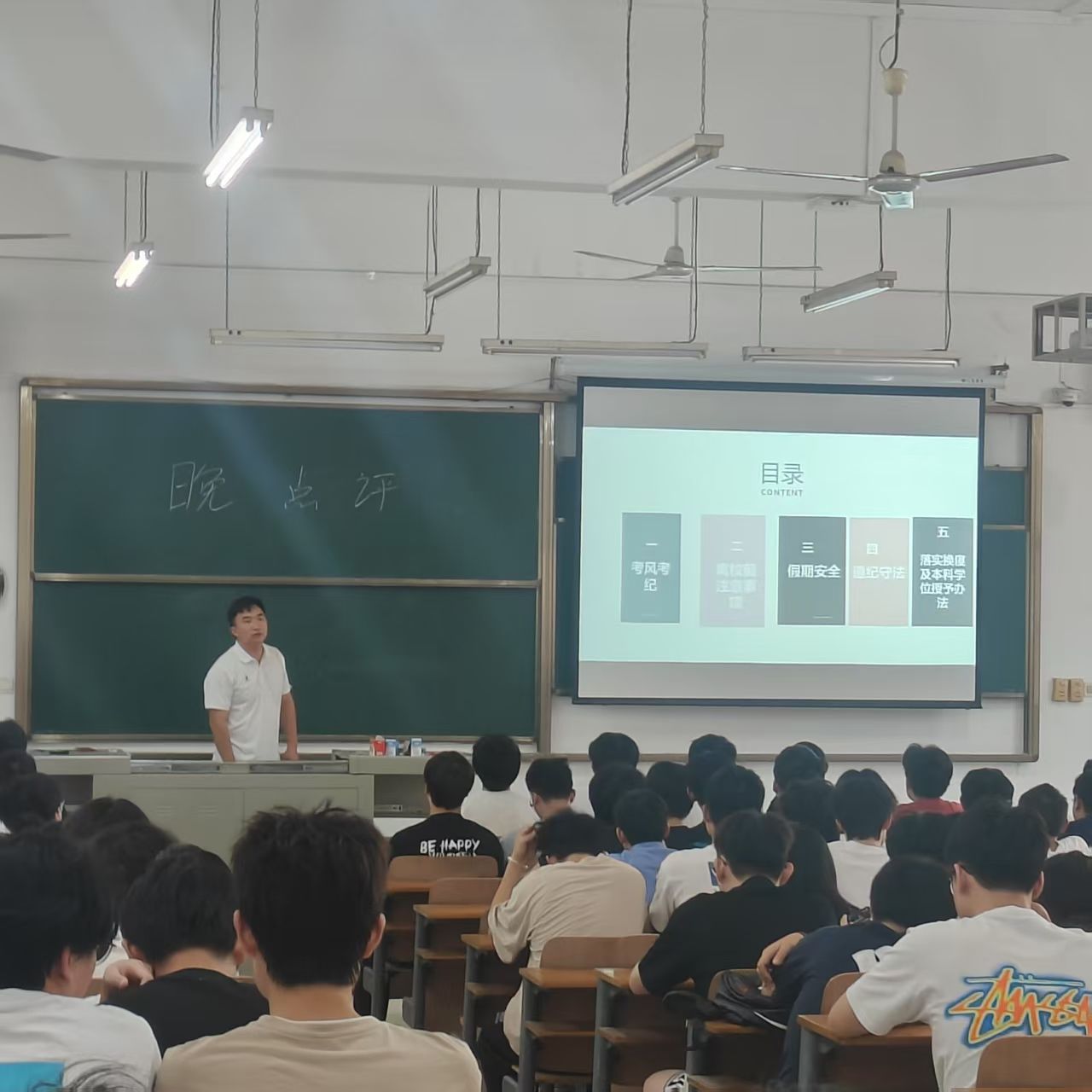 为强化学生期末规范意识,明确学业与发展方向,6月15日下午,辅导员马文明老师针对22级学生开展期末专题晚点评工作,围绕考风考纪、安全管理、学业规范及就业指导等重点内容深入讲解,为学生期末及暑期生活保驾护航。