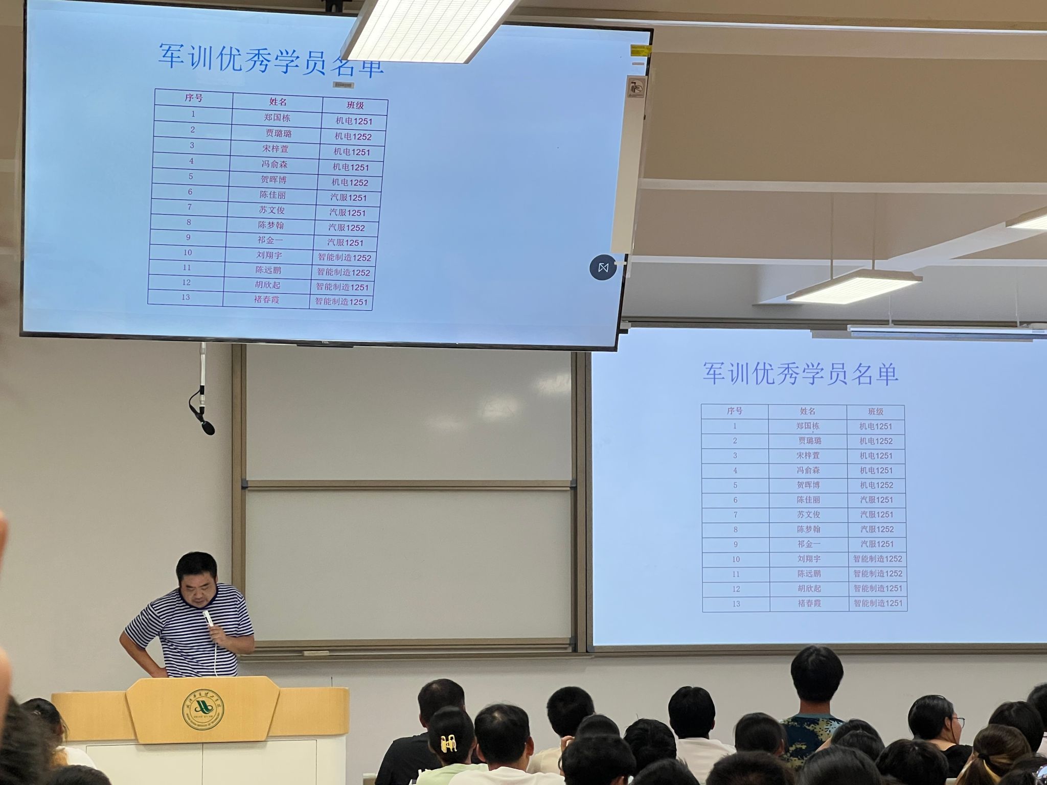 同时,杨海龙老师还对军训优秀学员进行集体表彰,他表示,军训期间,智能制造学院新生不惧烈日与高温。以顽强意志完成队列训练、内务整理等多项任务。从起初队列动作的生疏,到后来分列式的整齐划一,新生们不仅强健了体魄,更涵养了集体荣誉感与吃苦精神。“军训的苦与累,会化作你们大学生涯的精神养分,支撑你们在未来勇毅前行。”这是结尾总结杨海龙对集体学生勉励的话。