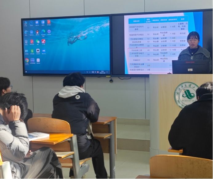 会上,宋老师首先对本学期课程体系进行了系统性梳理,重点聚焦期末考试备考与实践环节的推进安排。针对《汽车运用工程》《机械设计》等核心专业课程,宋老师并提醒同学们认真备考。在实践环节方面,宋老师对课程设计的进程进行介绍。