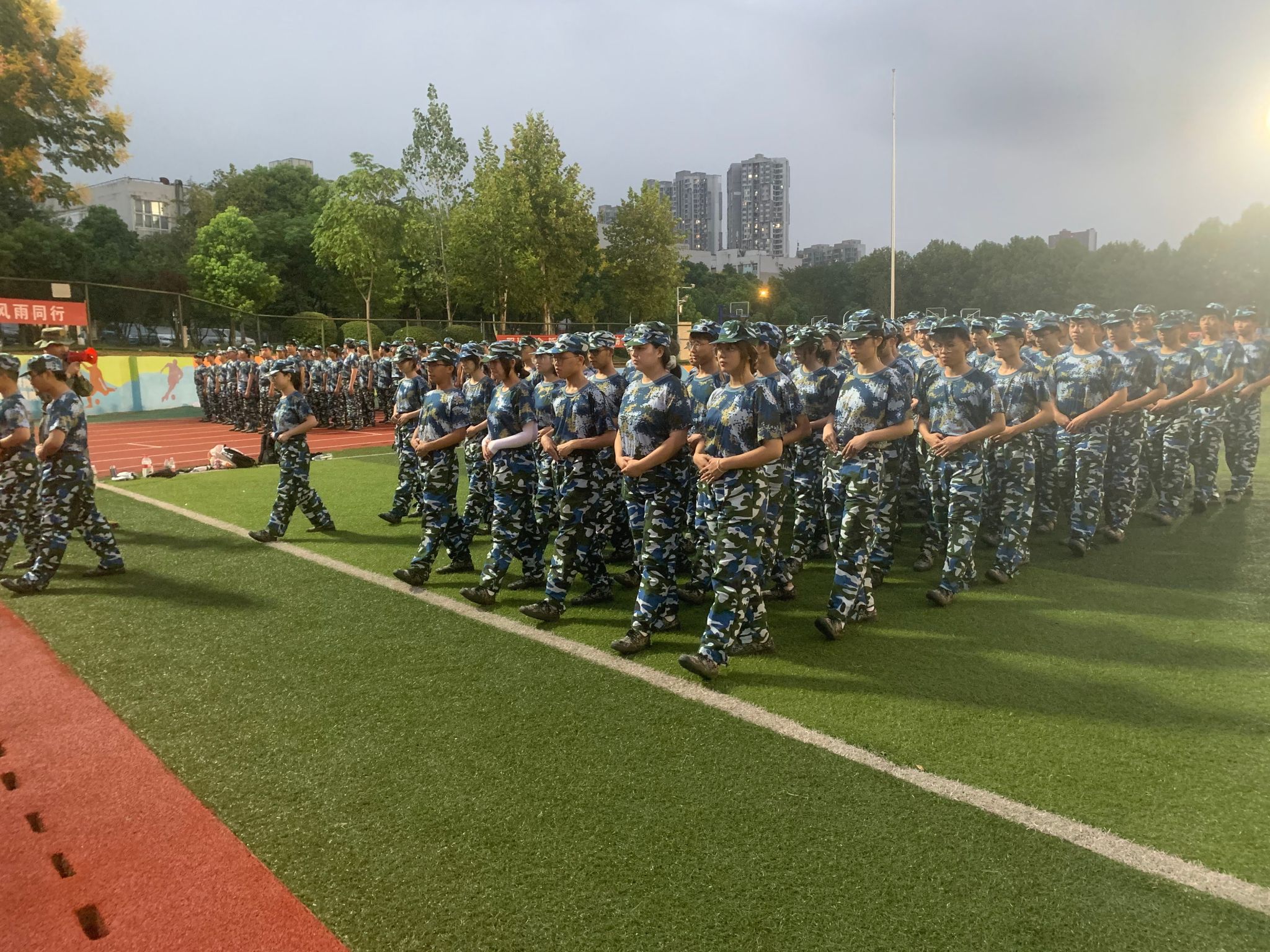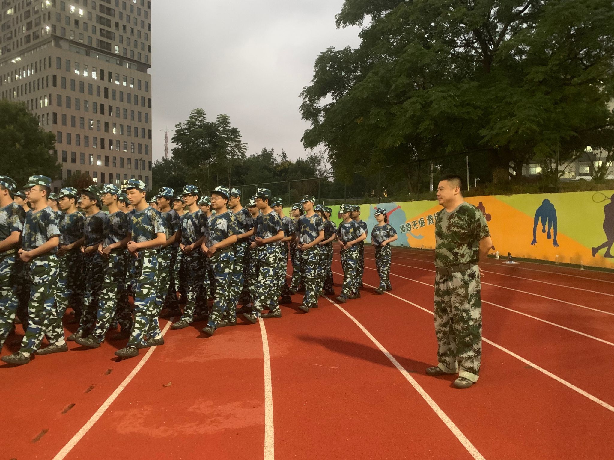 提到军训,脑中的第一反应是热,苦,累,这正是锻炼身体素质和磨练内心意志的一场历练。随着教官的一声哨响,军训正式开始。听,那干净利落的靠脚声;看,那太阳下笔直的身影,在短短的四天时间内,集合、解散、转向、齐步走等训练科目已经有了显著的成效。一声声响亮的“一二三四”正是同学们对军训投入热情最大的回应。新生学员说:“我会永远记住穿着绿色迷彩服帅气十足的样子。”可能这就是青春最有活力的样子吧。