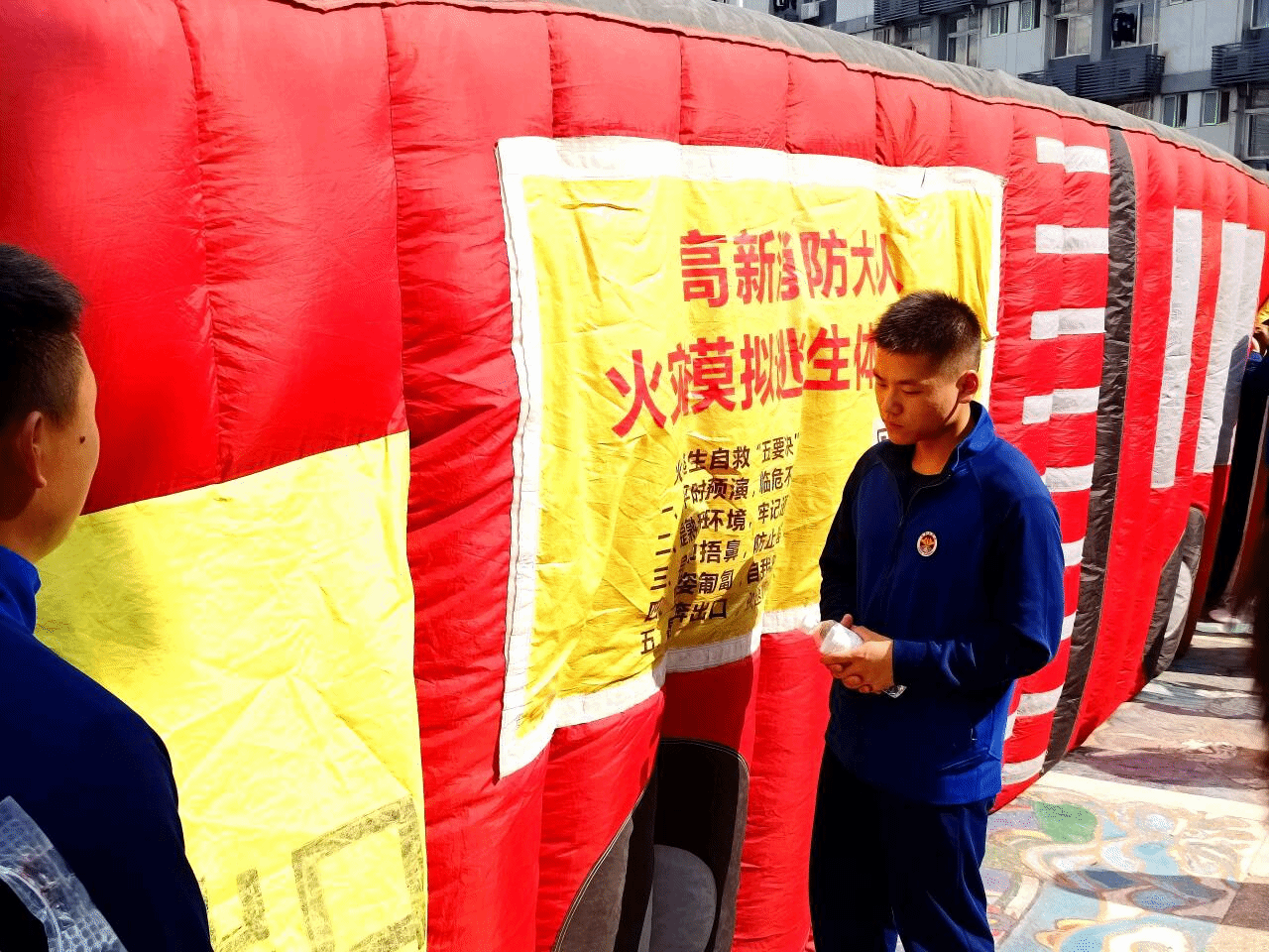 在模拟灭火器的使用中,消防员战士亲切邀请同学参与灭火器真实使用场景,我院同学踊跃参加,积极上前。同学通过消防战士们所教的提、拔、握等动作正确合理使用,皆成功消灭火源。在另一项模拟活动——模拟火灾逃生帐篷,吸引了大量同学前来体验,同学们的积极性覆盖全场。我院学子整齐排队,有序参与,体验火灾逃生场景。