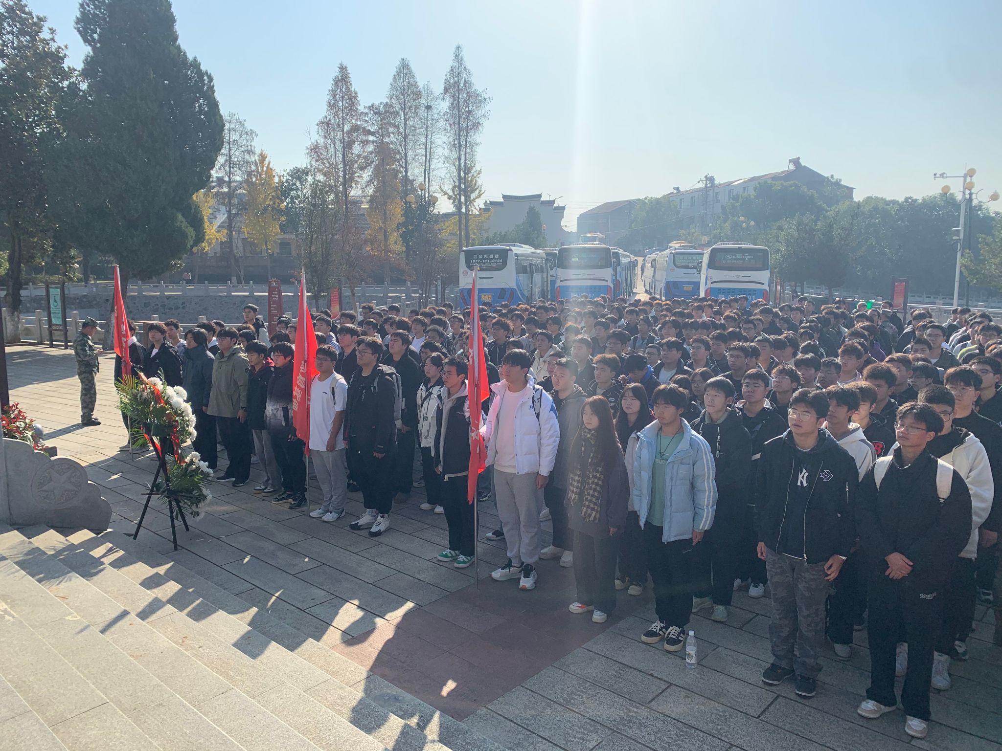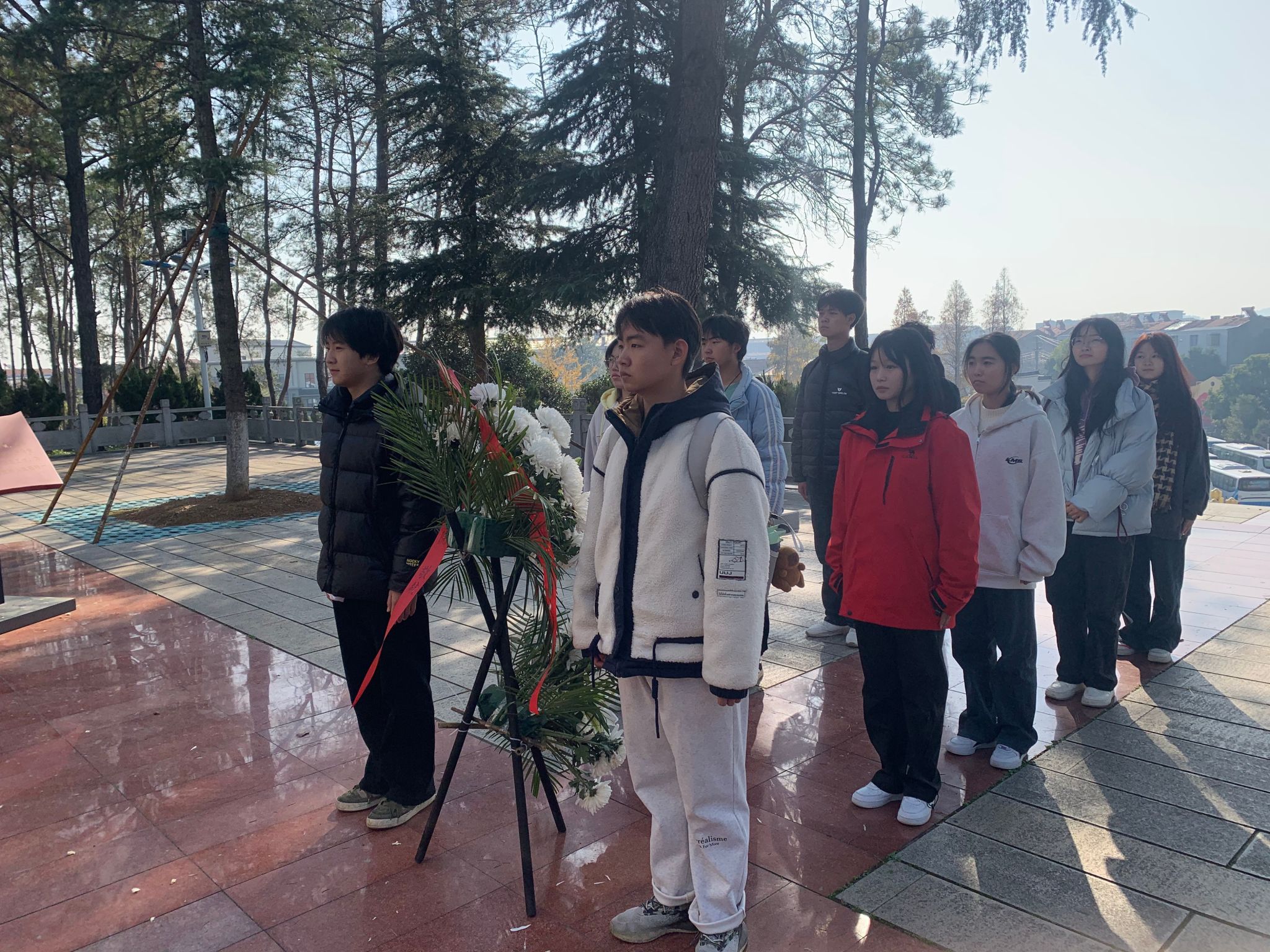 在 2024 年 12 月 1 日这个阳光明媚但略带寒意的日子里,智能制造学院的莘莘学子们怀着庄重而肃穆的心情,踏上了前往赵家棚抗日烈士陵园的征程。他们早早地聚集在了学校门口,每个人的脸上都洋溢着对这次特殊旅程的期待和好奇。