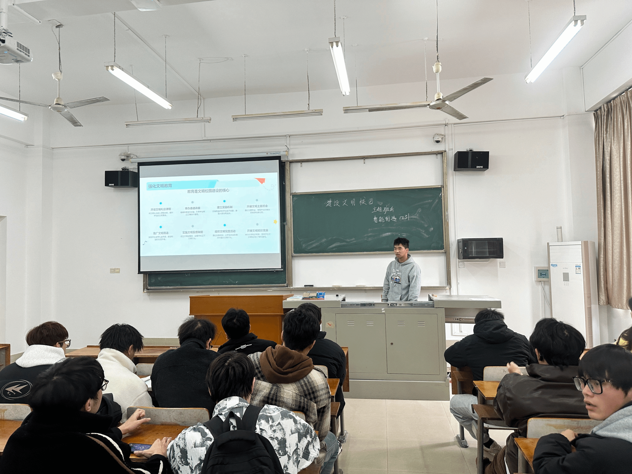 讨论环节,大家踊跃发言。学习委员提议设立“文明学习互助组”,帮扶学习困难同学,杜绝抄袭、吵闹等不良学风;文体委员则策划文明主题的课间活动,以趣味竞赛传播文明知识。而后组织委员为大家讲解了文明校园PPT。