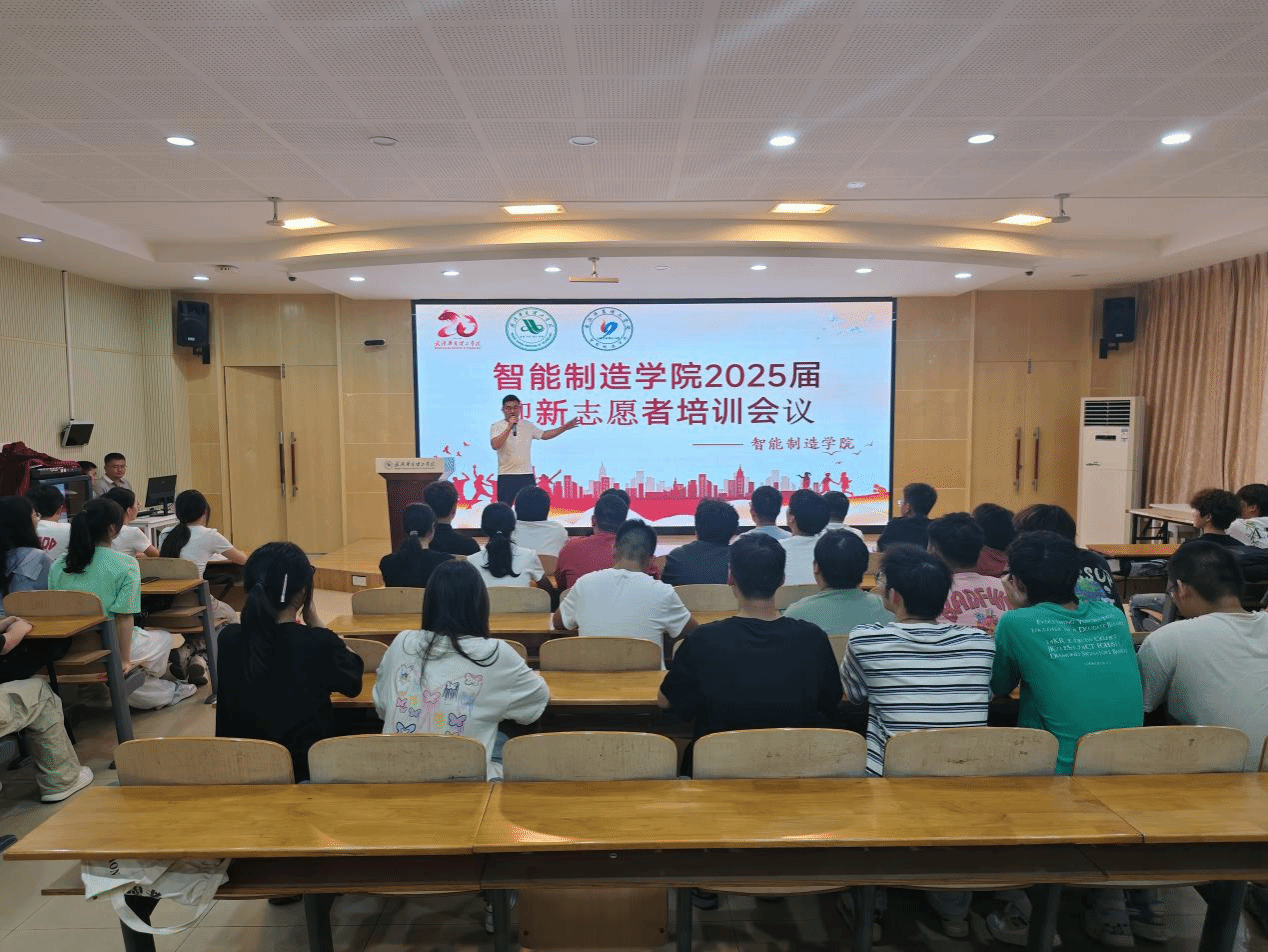为保障2025级新生迎新工作高效有序进行,9月6日中午,智能制造学院在2-201会议室召开迎新志愿者专题培训会议,全体迎新志愿者参会,学院相关负责人及学生干部参与。