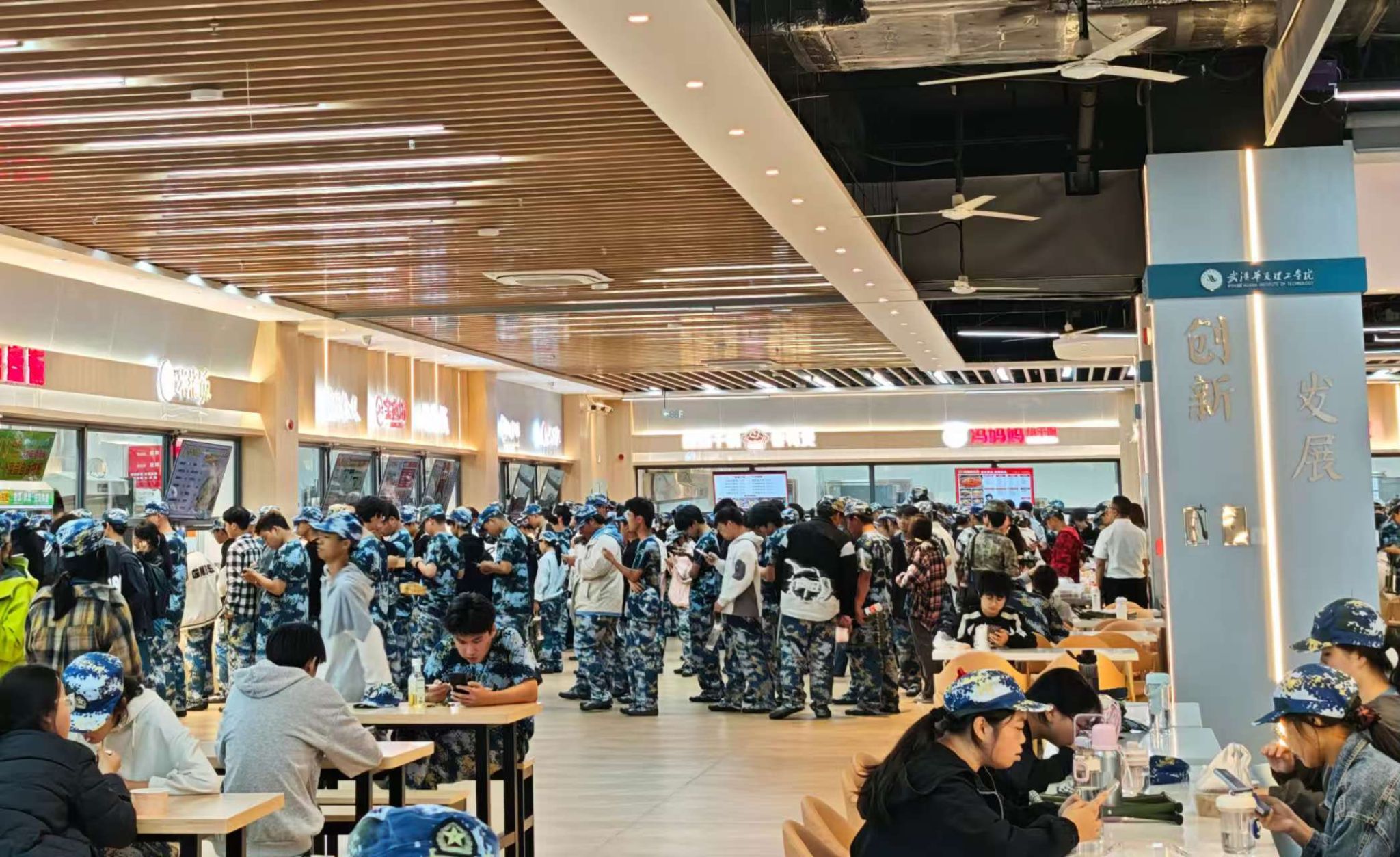 秋日的beat365官方网站食堂内,身着迷彩的新生们成为了一道独特的风景线。9月19日,正值新生军训关键期,食堂里人潮涌动却秩序井然,迷彩的“海洋”中,是青春与烟火气的交融,是军训生活里的别样“食”光。
