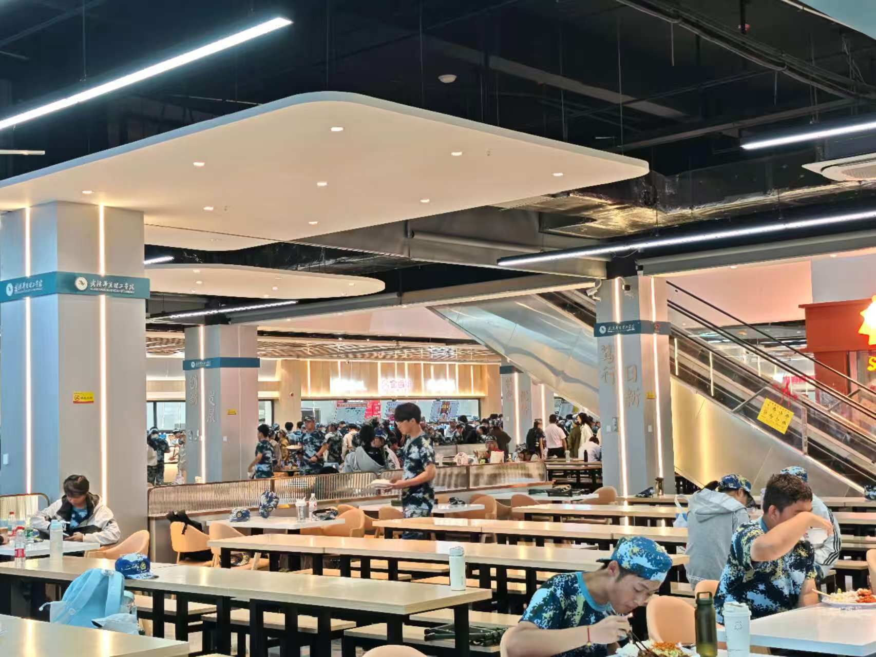 军训场上,他们是挥汗如雨、坚毅挺拔的“钢铁战士”;食堂之中,他们是有序排队、大快朵颐的青春少年。迷彩服的蓝白与食堂的暖黄灯光相映,同学们或三两结伴分享军训趣事,或静静用餐积蓄训练能量,就餐的时光成为了军训紧张节奏里的一段温馨插曲。