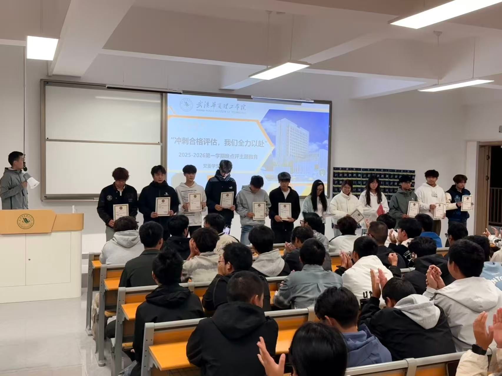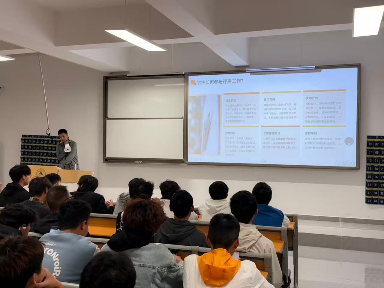 最后,朱俊捷老师解读本科教学工作合格评估“二十字方针”,并结合班级实际提出要求:“合格评估关乎学校发展,更与大家的学习环境息息相关。希望大家从课堂纪律、作业质量、学风建设等细节入手,以实际行动支持评估,把‘以评促建’的要求落实到每一次学习、每一项任务中。”