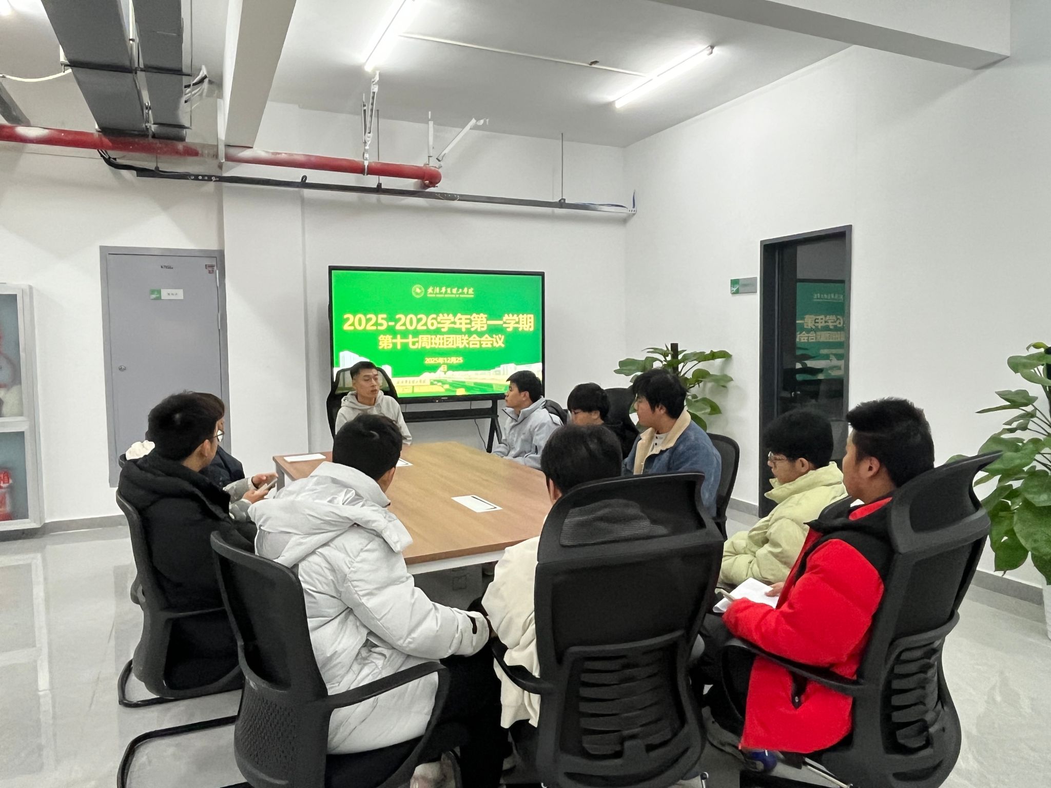 为统筹推进学期末班团工作,凝聚学生工作合力,12月25日,辅导员朱俊捷组织召开2025-2026学年第一学期第十七周班团干部会议,各班班长、团支部书记及学生骨干代表参会。