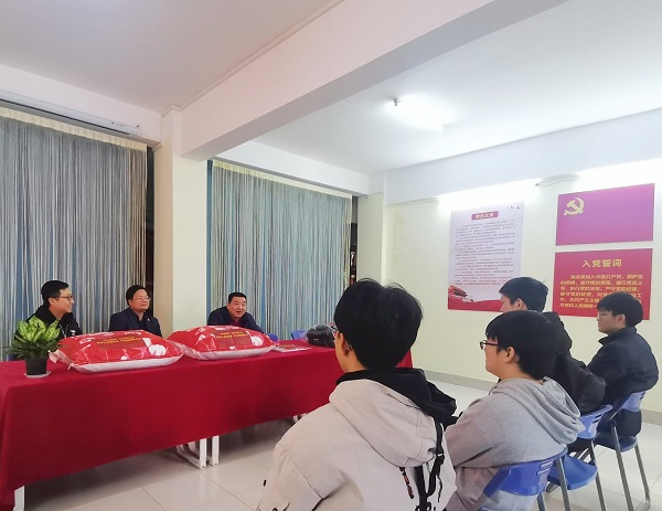 校党委书记丁德智与同学们进行了亲切座谈,仔细询问了学生们的学习以及生活情况,鼓励同学们在今后的学习、生活及工作中要学会自强不息,勇于面对各项挑战与挫折,并激励同学们学好专业知识,掌握专业技能,珍惜大学时光,在实现中华民族伟大复兴进程中实现个人价值。同时,提前祝同学们元旦快乐,假期返乡途中做好防护,平安回家。