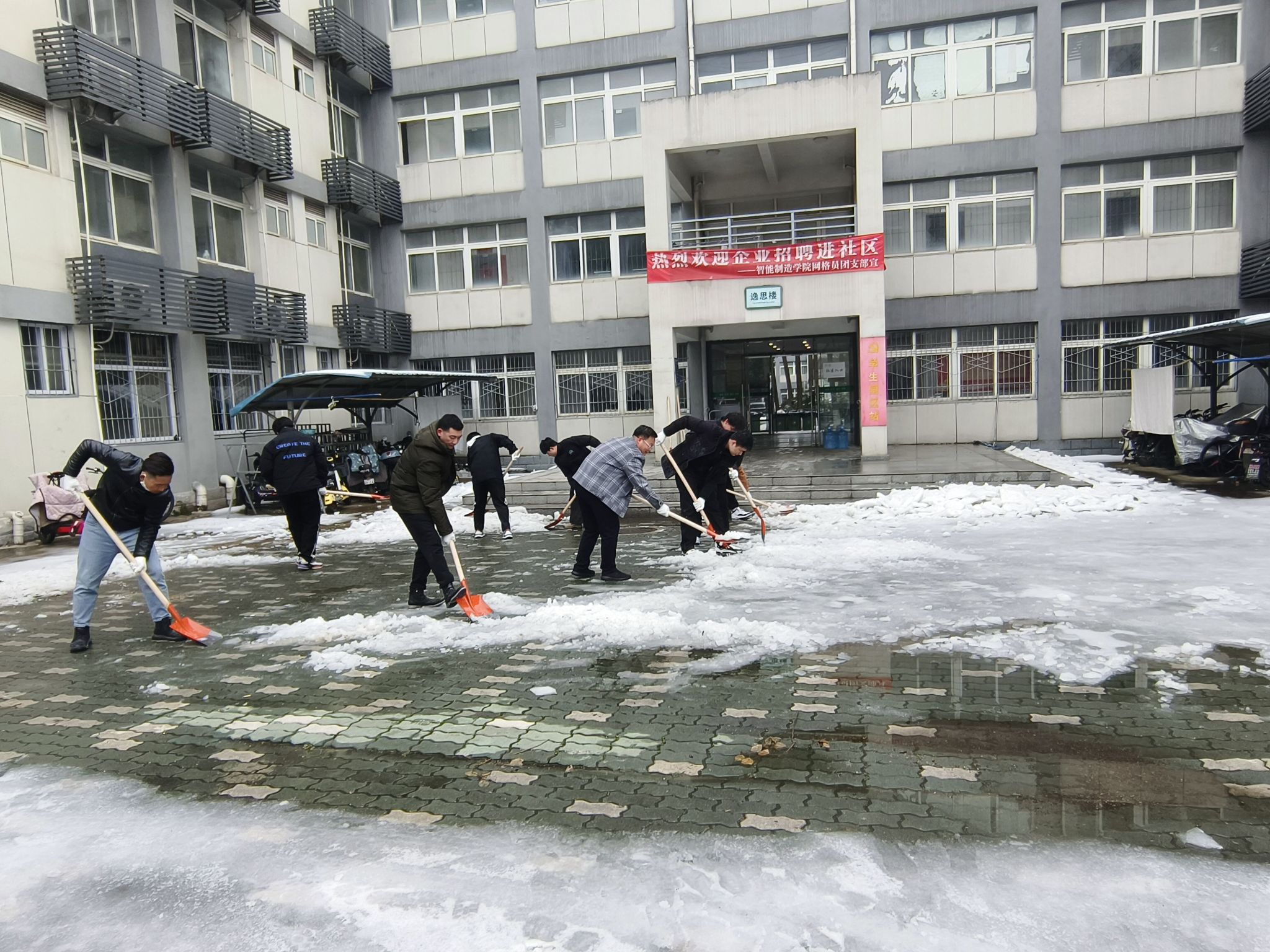 智能制造学院组织师生开展铲雪除冰工作