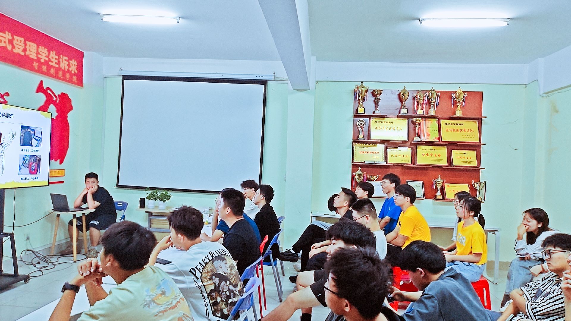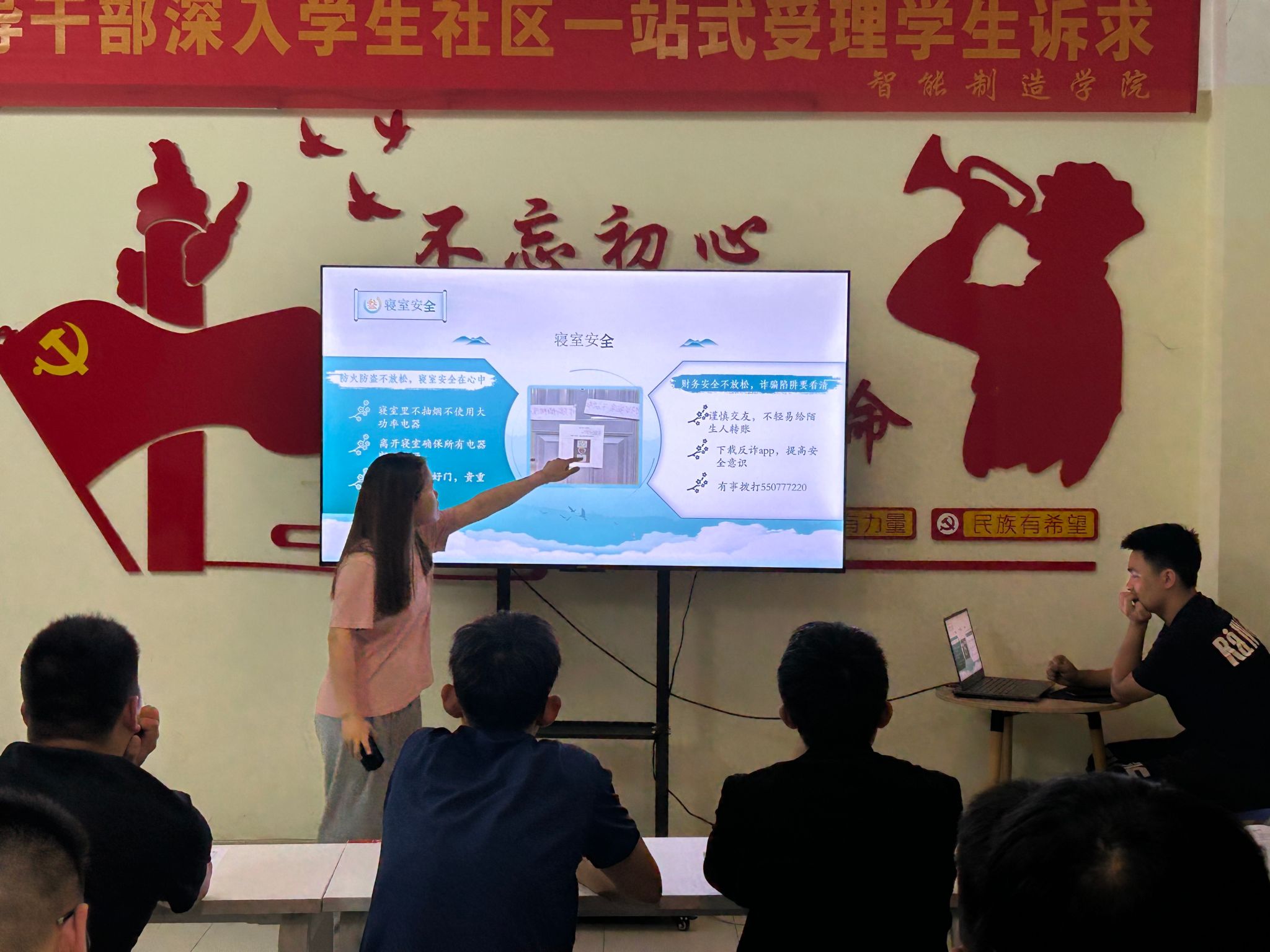 5月7日晚,智能制造学院在逸思楼学生社区举行2024年春季公寓文化节决赛。学院学工办主任向胜涛、辅导员李振锋及各寝室代表参加了活动。