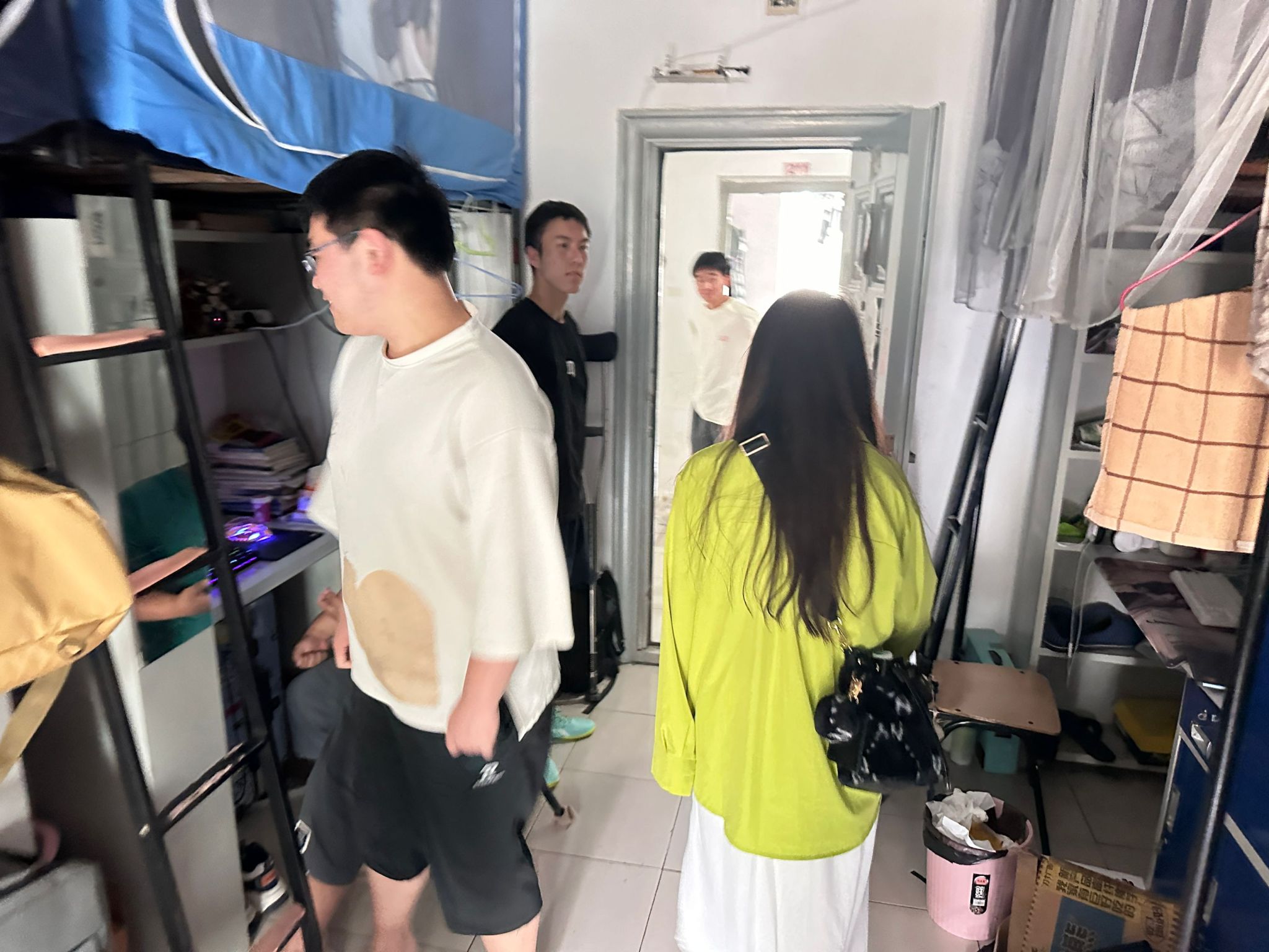 班会结束后,辅导员李娇到学生宿舍检查卫生安全,并嘱咐同学们:“正值夏天,要注意寝室安全,特别是安全用电方面,严格遵守学生手册相关规定,在和寝室同学聊天中,李娇辅导员鼓励大家树立明确的学习和生活目标,大学生活已经过半,要合理安排时间,有步骤有计划的学习,做自己青春的指路人。