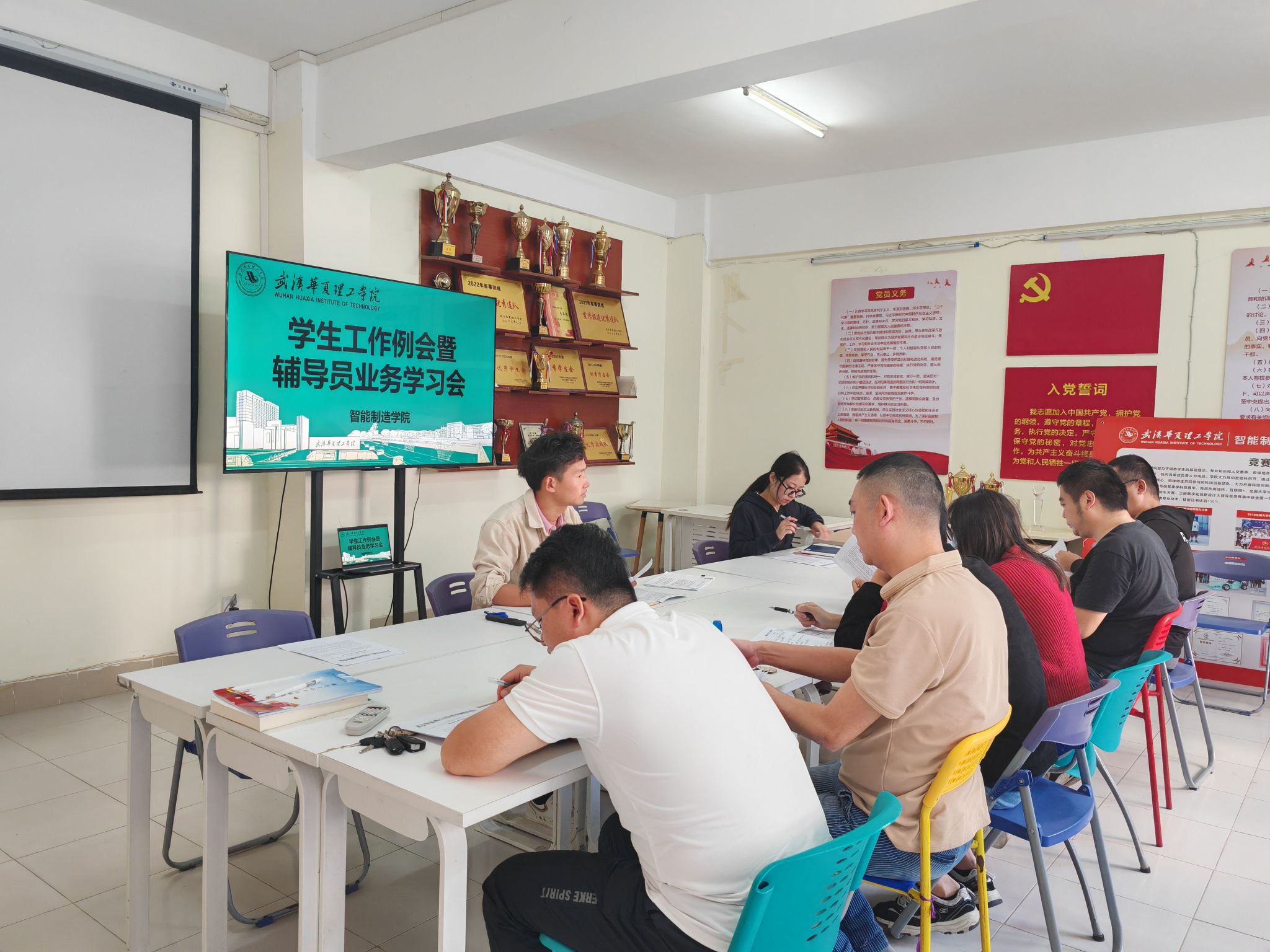 10 月 11 日上午,智能制造学院在学生社区召开学生工作例会暨辅导员业务学习会。党总支组织员祝炜黎、学工办主任向胜涛以及全体辅导员参加本次会议,共同为学院学生工作献智献策。本次会议由学工办主任向胜涛主持。